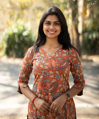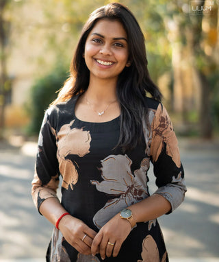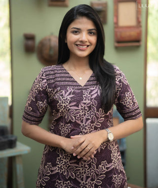 Midnight Umber Cotton Kurti with 3/4 Sleeves – Casual Wear