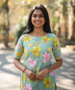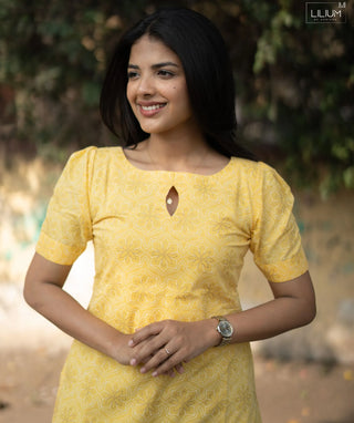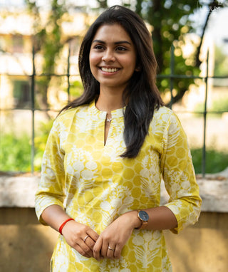 Lime Yellow Blossom Cotton Ready to Wear Kurti – Casual Style