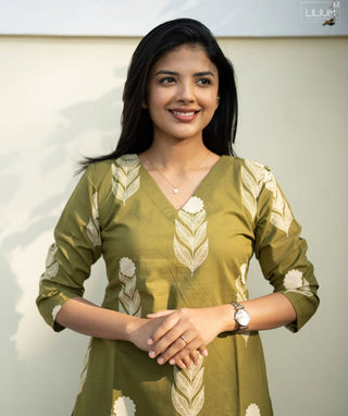 Verdant Haldi Grove Cotton A-Line Kurti with Pockets