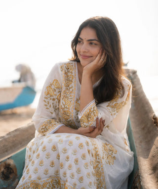 Saffron Glow Chanderi Kurti with Shawl – Casual Chic