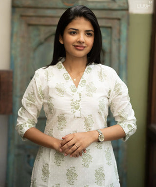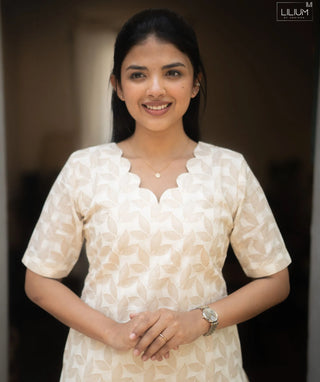 Ivory Leaf Cotton Co-ords Set with Pockets – Casual Wear