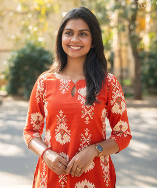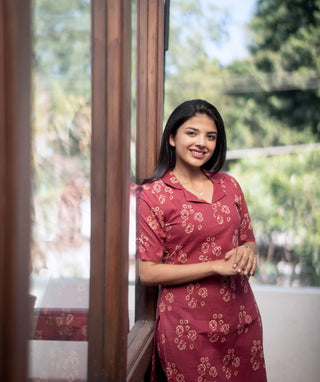 Crimson Charm Cotton Ready to Wear Kurti – Casual Comfort