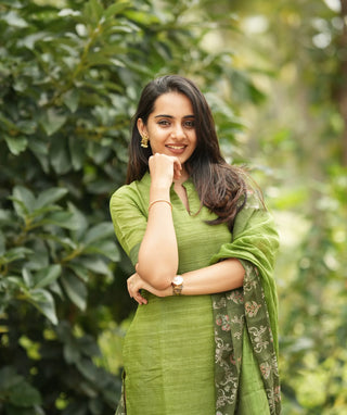 Emerald Meadow Chanderi Kurti with Shawl | Casual Chic