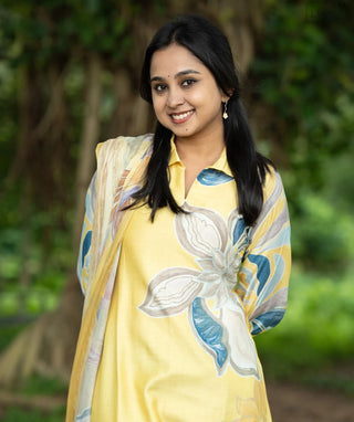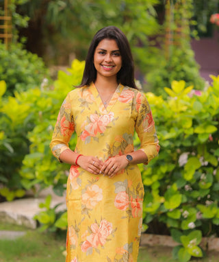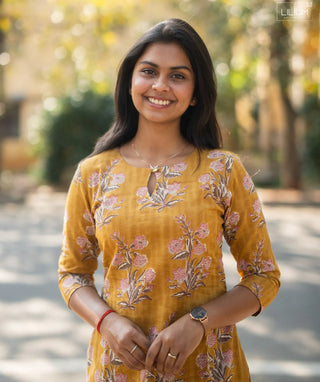 Honey Yellow Floral Muslin Kurti – Everyday Casual Wear
