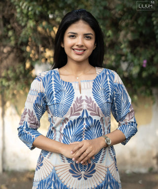Indigo Fern Mist Cotton Kurti with 3/4 Sleeves – Lined