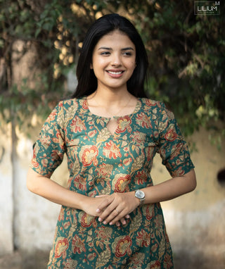 Verdant Green Cotton Kurti – Lined Casual Wear