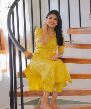 Crowned Yellow Banaras Silk Co-ords with Zari Detailing