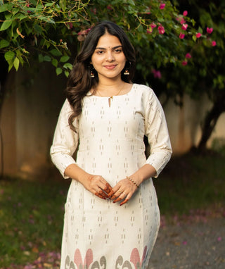 Ivory Bloom Cotton Slub Kurti with 3/4 Sleeves – Everyday Wear