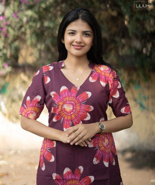 Midnight Terracotta Bloom Cotton Co-ord Set with Flared Bottom