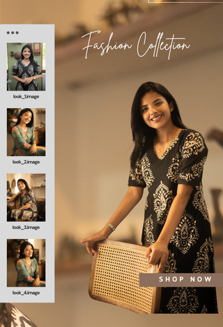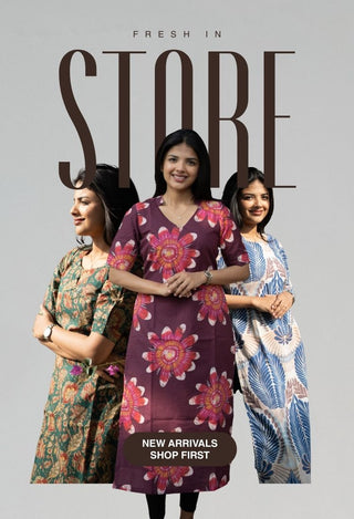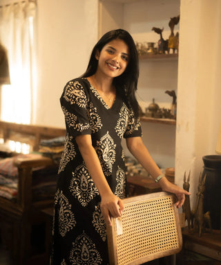 Midnight Dune Blossom Handblock Cotton Kurti – Elbow Sleeve