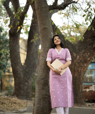 Primrose Dust Cotton Kurti with Open Slit & Elbow Sleeves