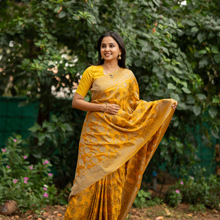 Golden Reverie Banaras Silk Saree with Blouse Fabric
