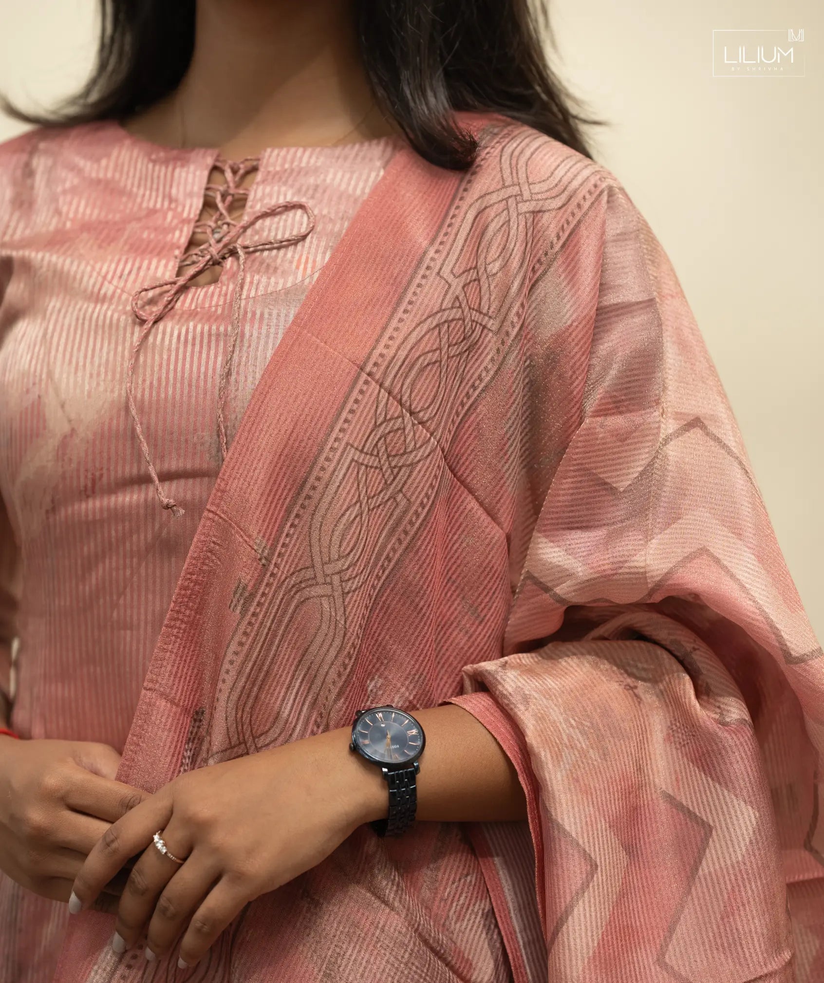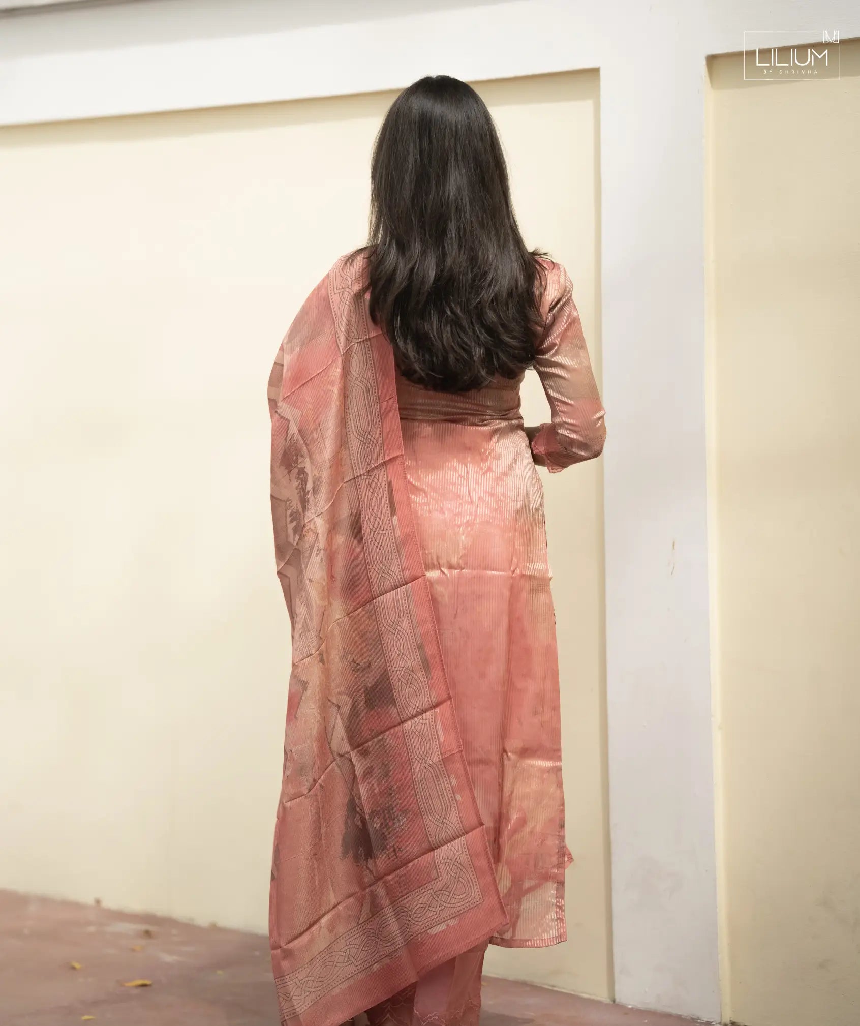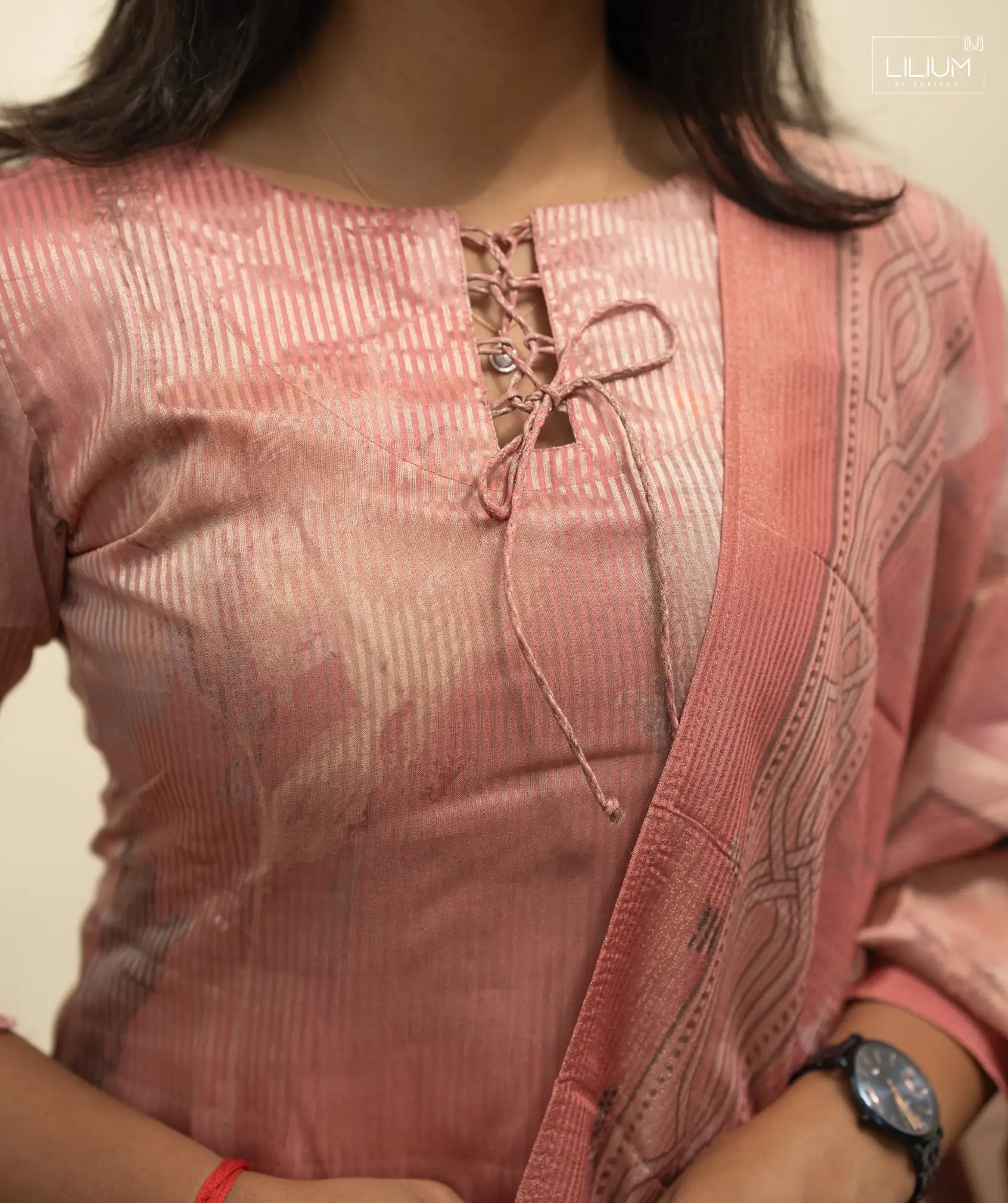 Elevate your everyday style with this elegant Rose Dawn Muslin 3-Piece Set, designed for breathable comfort and effortless appeal. Crafted from lightweight muslin, this set includes an 3/4th-sleeve top with an open slit, a matching bottom measuring 41 inches, and a coordinated third piece for a complete, cohesive look.