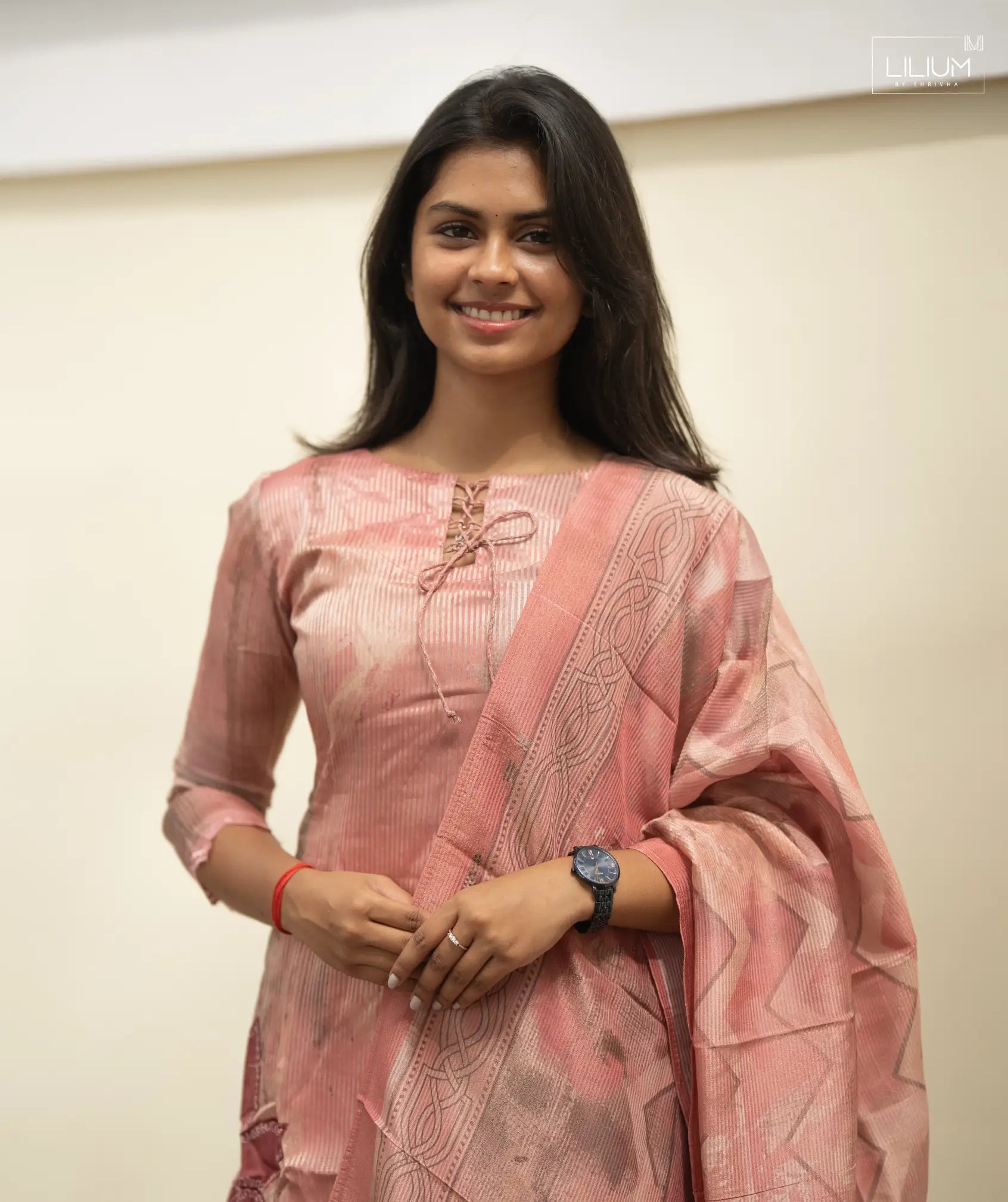 Rose Dawn Muslin 3-Piece Set with Elbow Sleeves – Casual Wear