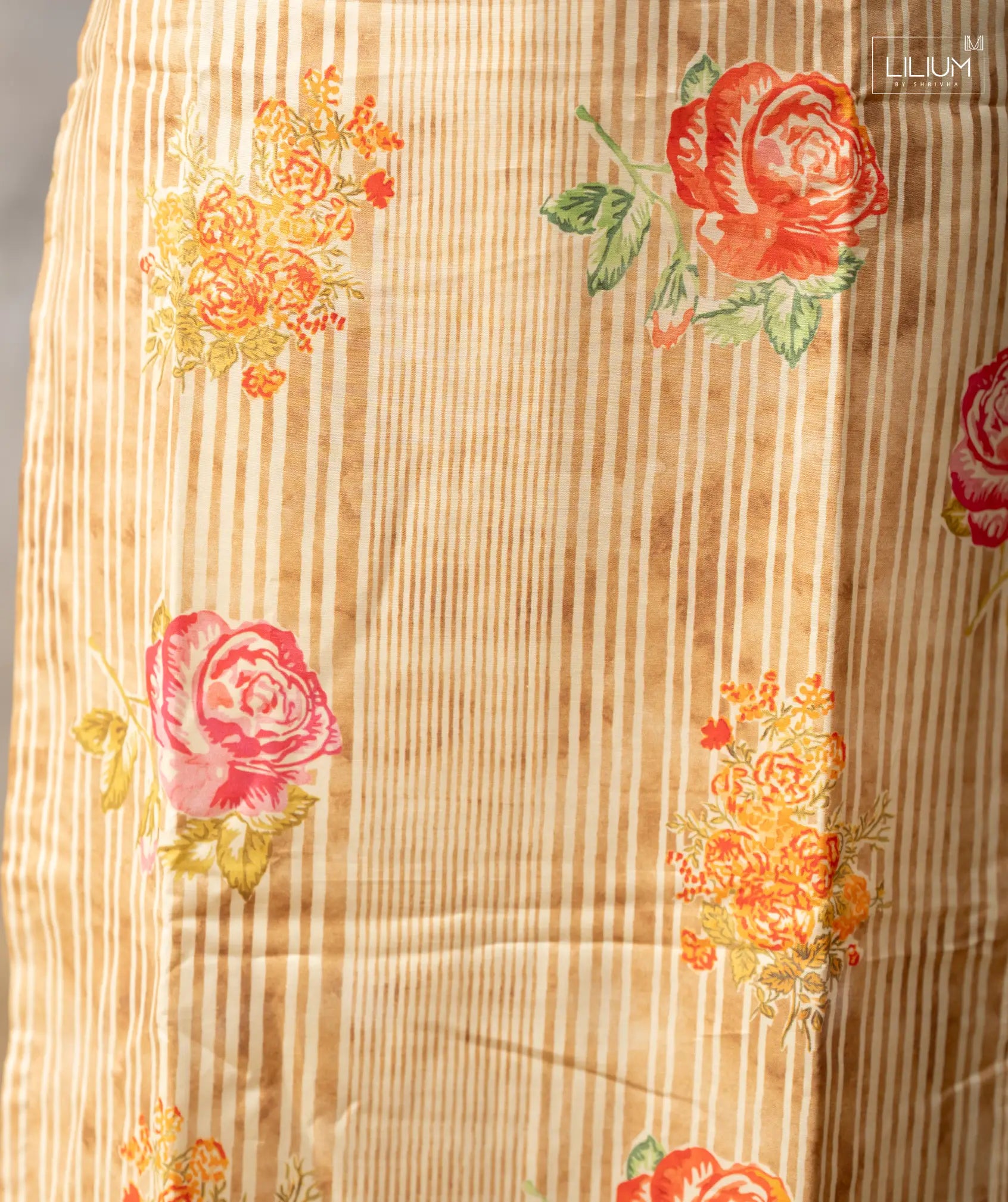 Gilded Bloom 3-Piece Muslin Silk Dress with Slit & Elastic Waist