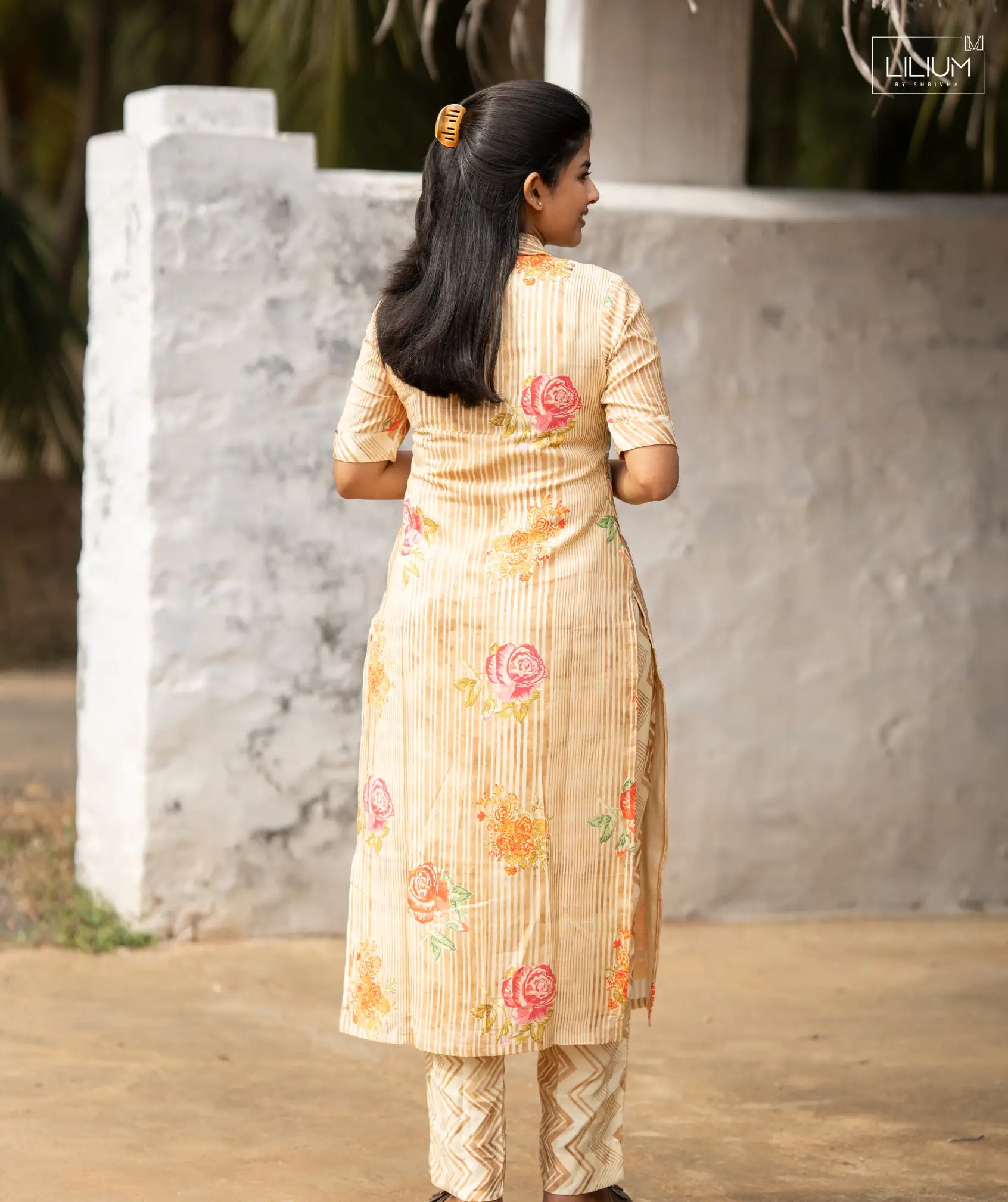 Step into effortless elegance with the Dynasty Rose Muslin Co-ords, a perfect balance of comfort and chic. Designed from premium muslin fabric, this set features a 46-inch top with open slit and a 38-inch bottom, tailored for versatility and everyday sophistication. The front hook closure and full elastic waistband ensure a secure, flexible fit, while the elbow sleeves add a graceful finish.