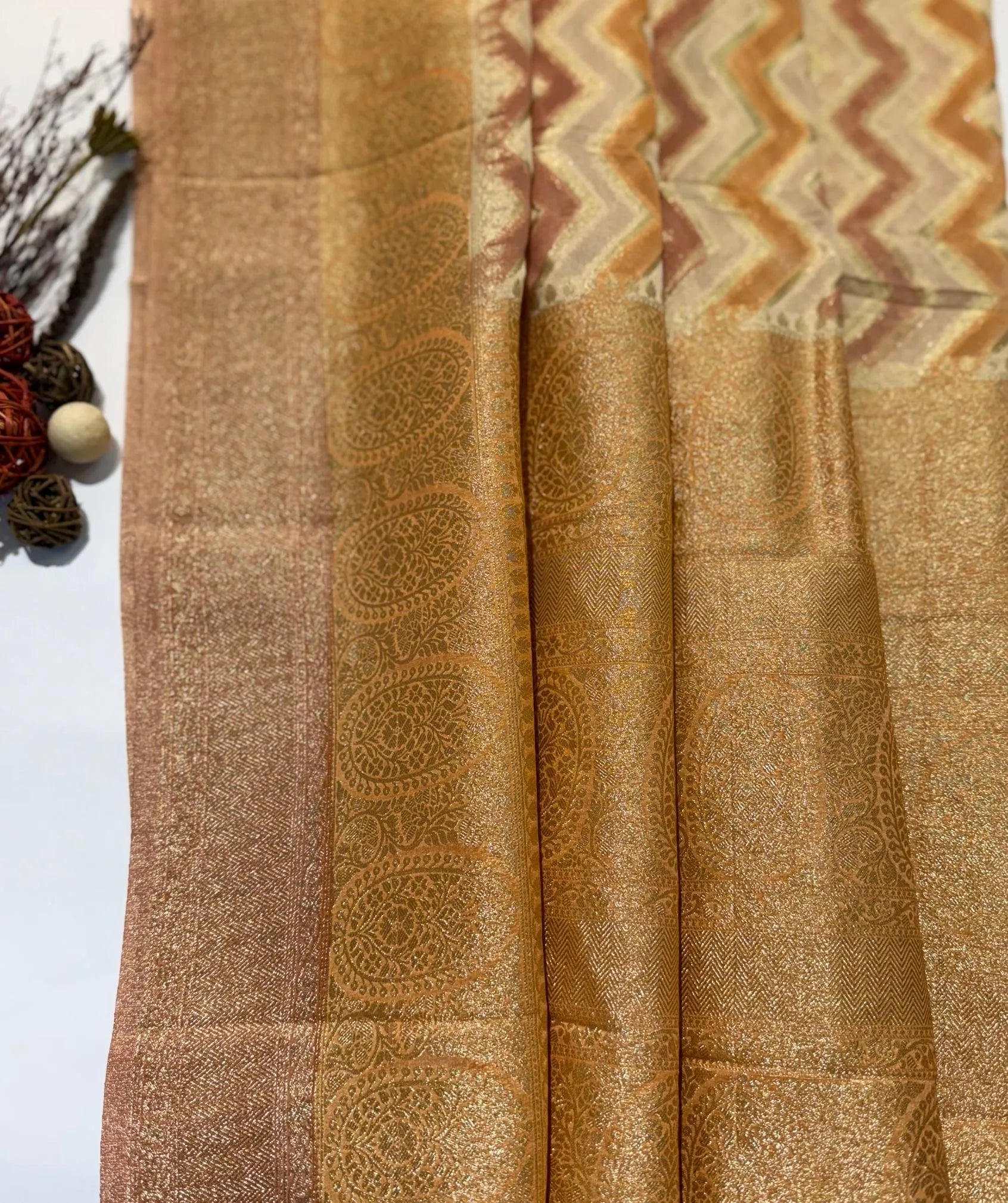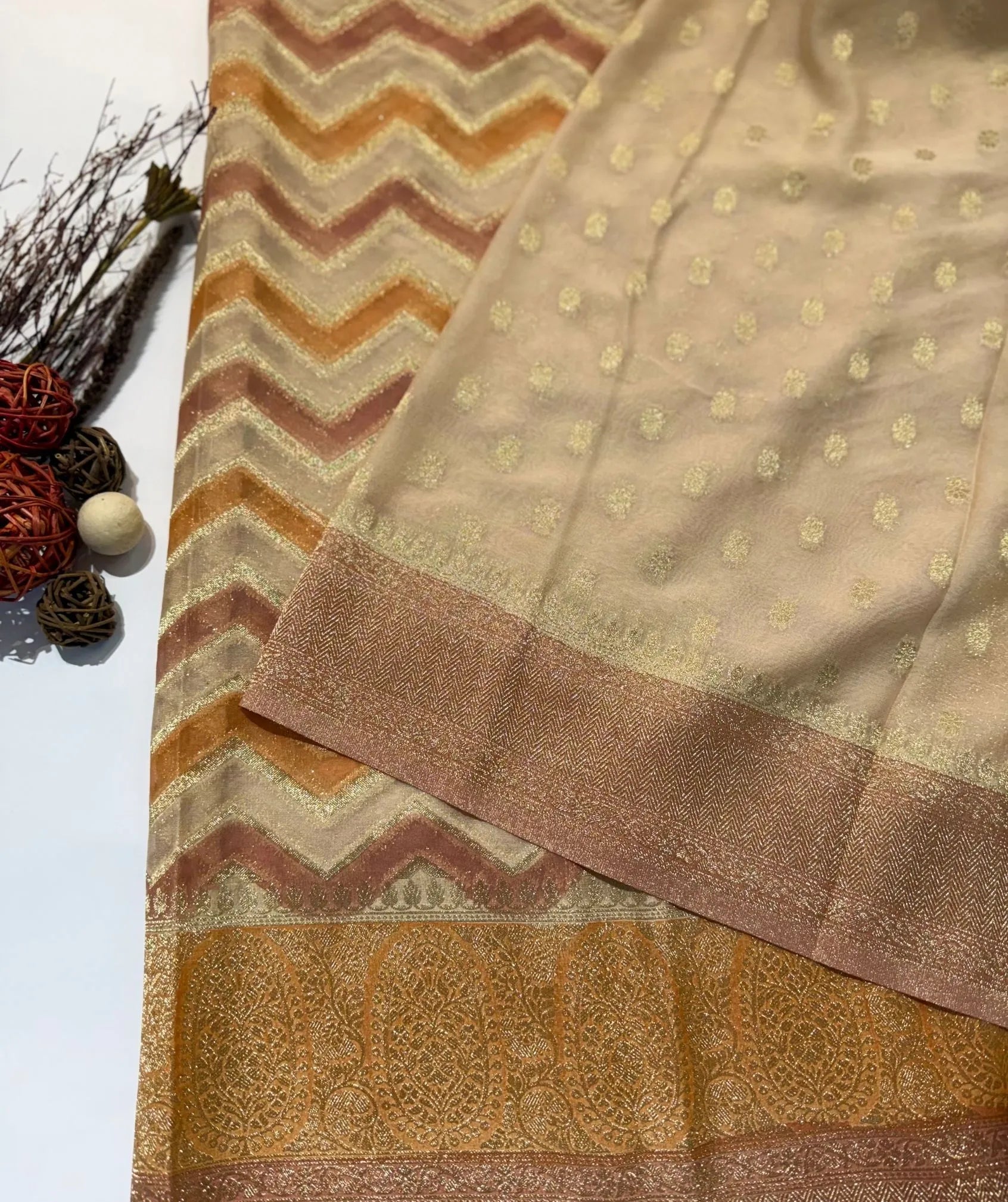 Amber Sand Banaras Saree with Rich Zari Weave