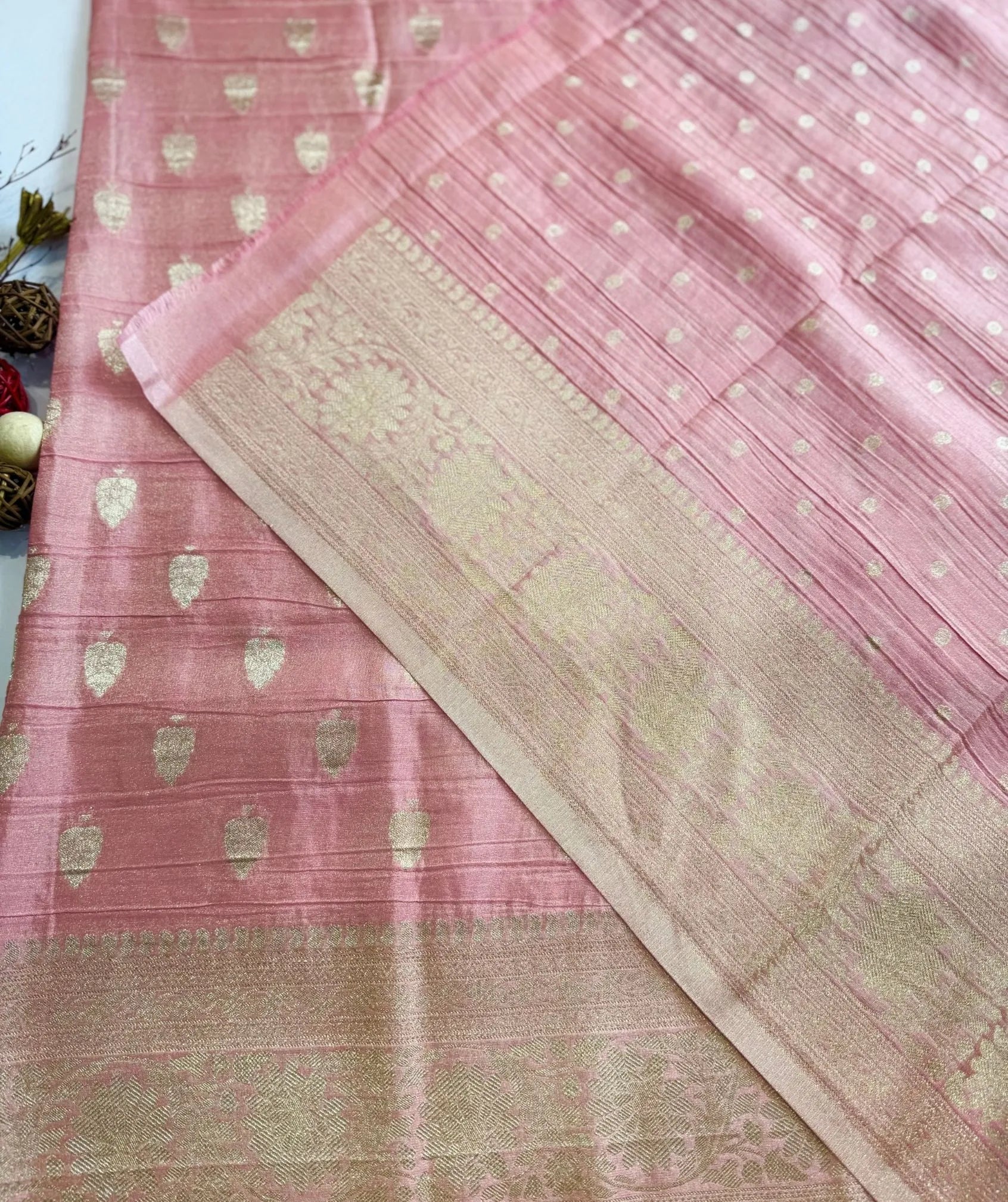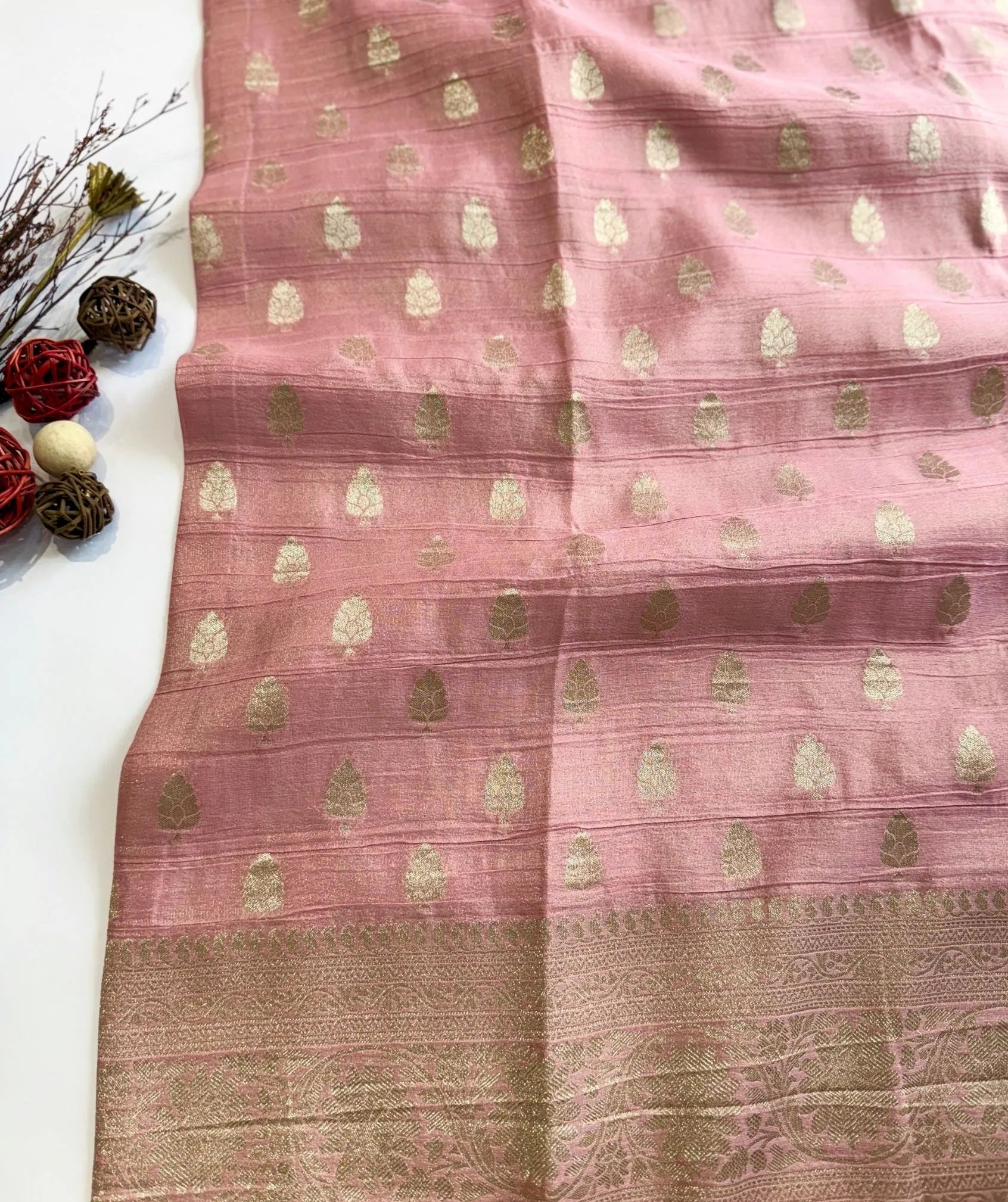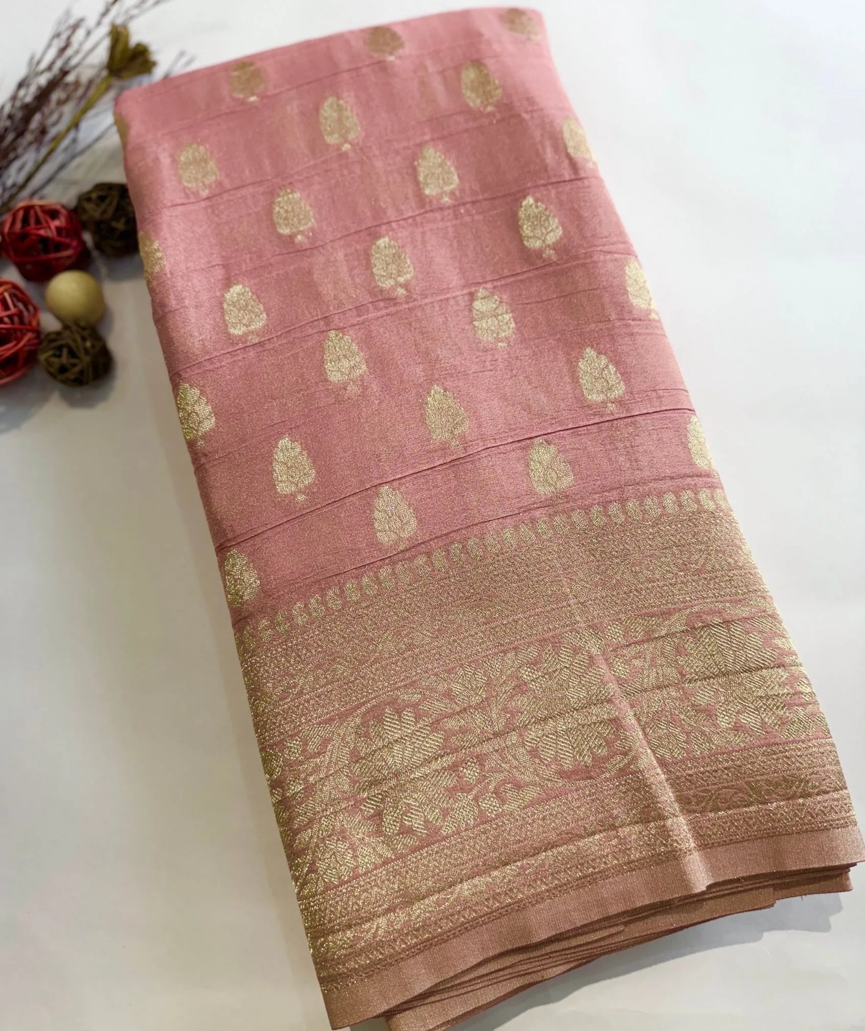 Rusty Rose Crush Tissue Banaras Saree with Zari Weave
