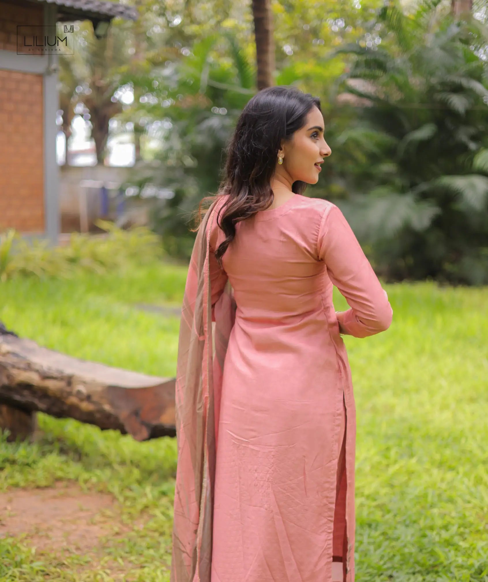 Add refined elegance to your festive wardrobe with the Rose Dominion Muslin 3-Piece Set. Crafted from soft and breathable muslin fabric, this outfit features a 44-inch kurta designed with an open slit and classic 3/4th sleeves for a graceful silhouette. The coordinated bottom comes with a 38-inch length and a full elastic waistband, offering comfort and ease throughout the day. Functional pockets add everyday practicality, while the full lining ensures enhanced coverage and structure. Finished in the sophisticated Rose Dominion shade, this festive wear set blends comfort with timeless style. Its thoughtful design and versatile three-piece styling make it a standout choice for celebratory occasions.