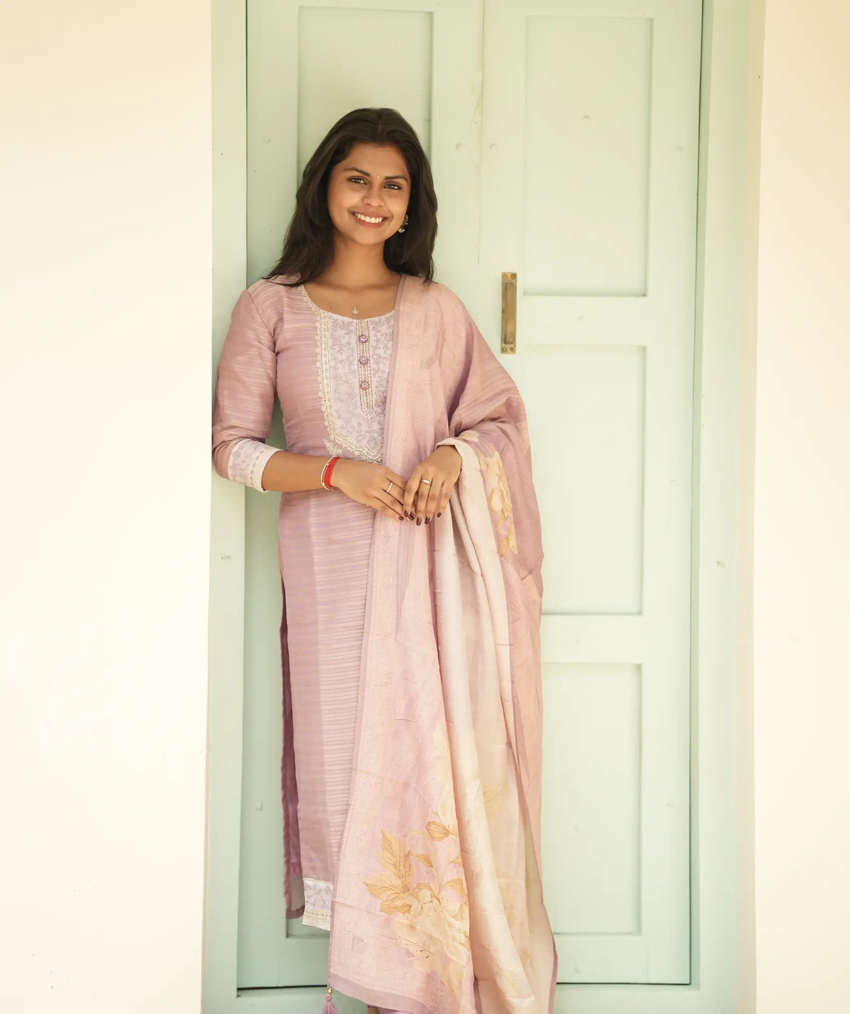 Rose Quartz Tussar Silk Festive 3-Piece Set with Pockets