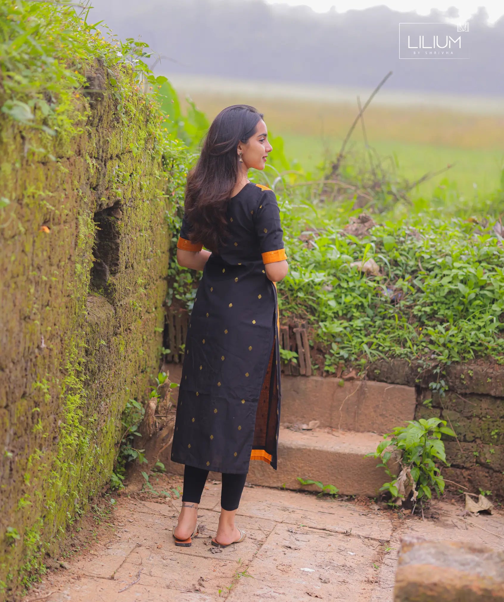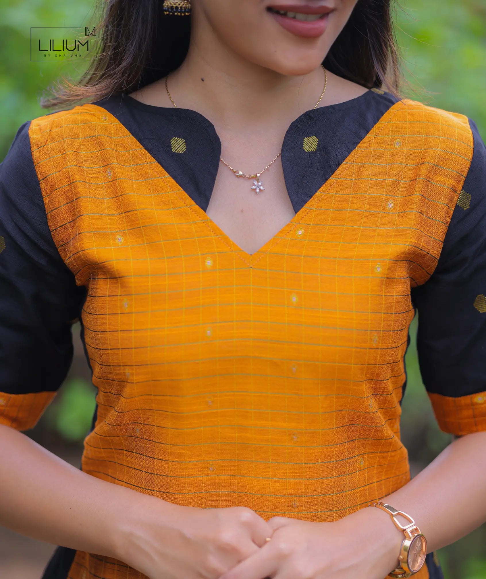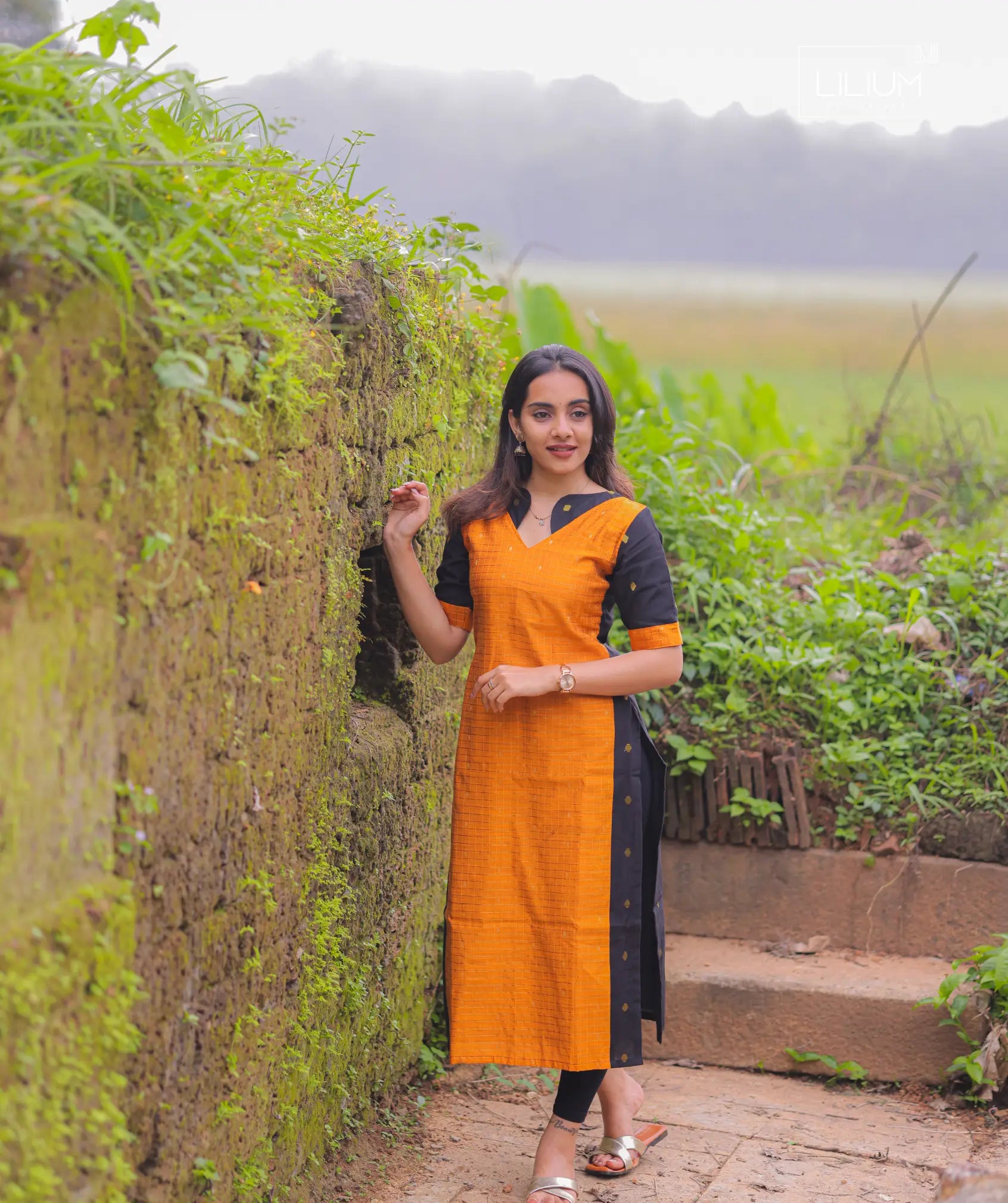 Bring effortless grace to your everyday look with the Amber Sovereign Cotton Slub Kurti, crafted from premium cotton slub fabric with delicate zari detailing. Designed with a 45-inch length and open slit, this kurti offers breathable comfort and timeless elegance. The amber hue reflects royal warmth, making it ideal for casual gatherings or day events.
