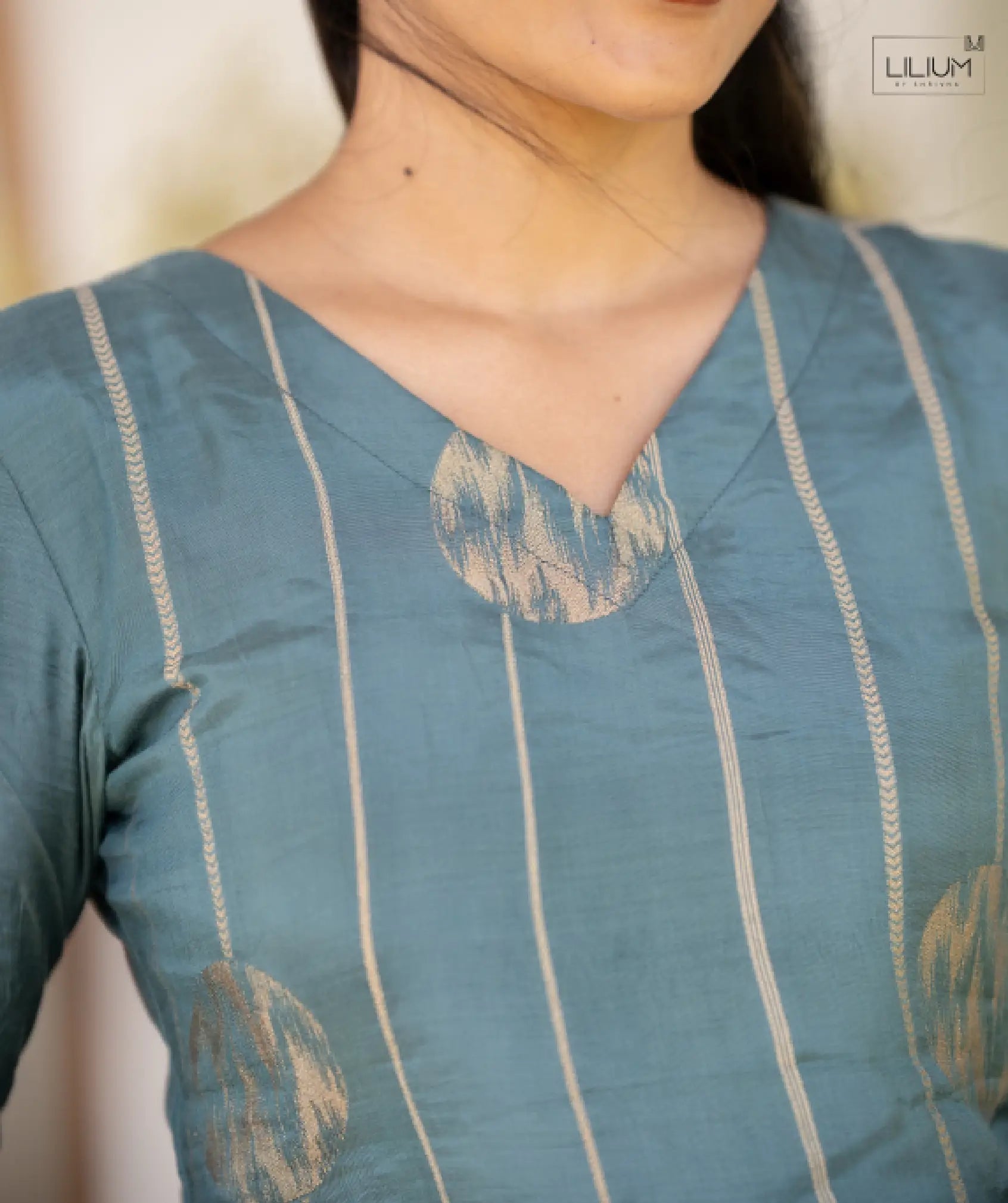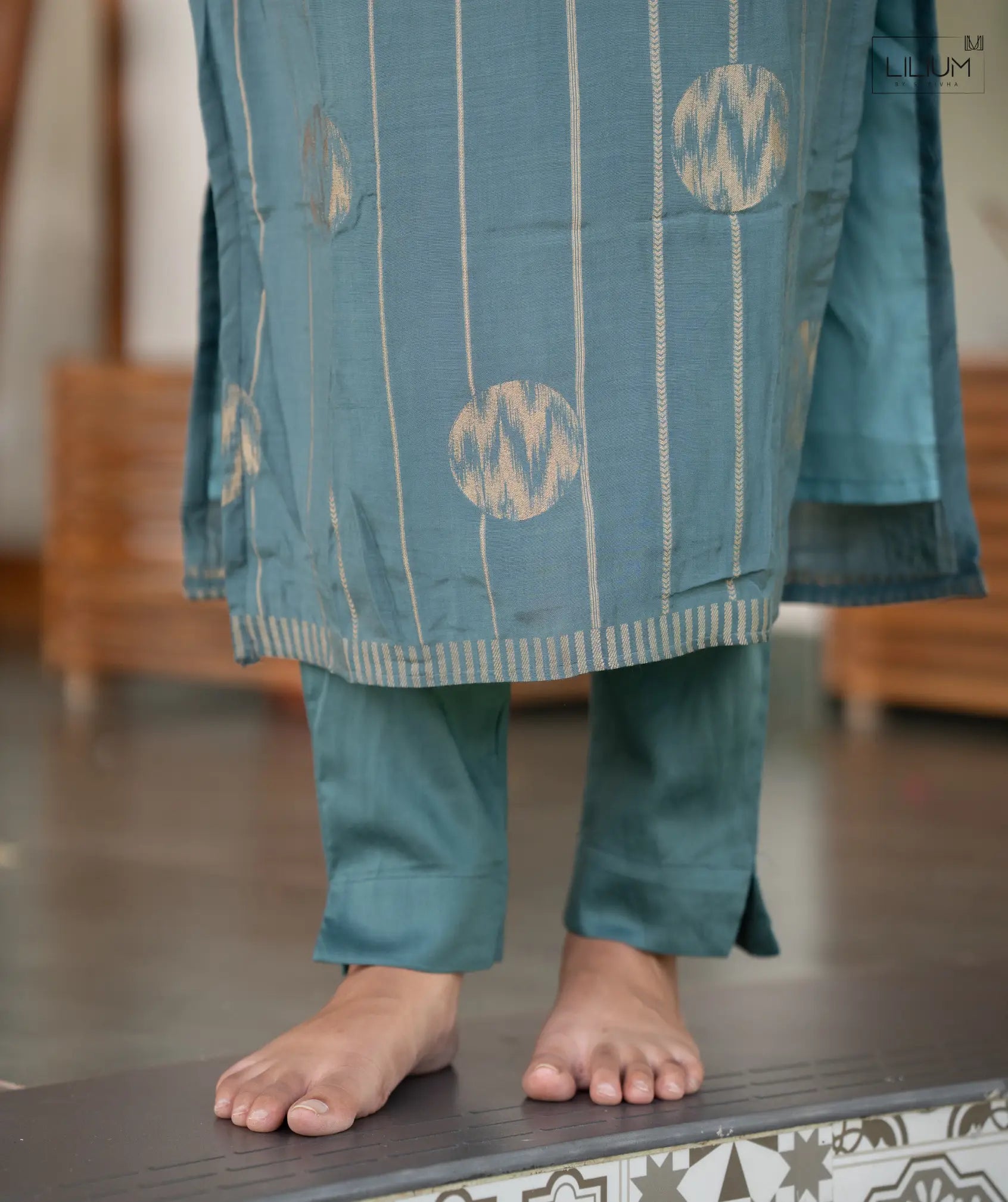 Elevate your festive style with the Celeste Jade Muslin Silk 3-Piece Festive Set with Zari, a perfect blend of tradition and modern design. Crafted from premium muslin silk with delicate zari work, this ensemble includes a 46-inch long kurta with open slit, a full-elastic bottom, and a graceful dupatta for a complete festive look. The elbow sleeves add elegance, while functional pockets bring a touch of convenience. The striking Celeste Jade color makes it an ideal choice for Diwali outfits, wedding wear, and party celebrations. Lightweight yet luxurious, this designer festive outfit ensures comfort without compromising style. Perfect for women who seek both sophistication and practicality, this muslin silk festive co-ord set is a wardrobe must-have for cultural gatherings, family events, or special evenings.