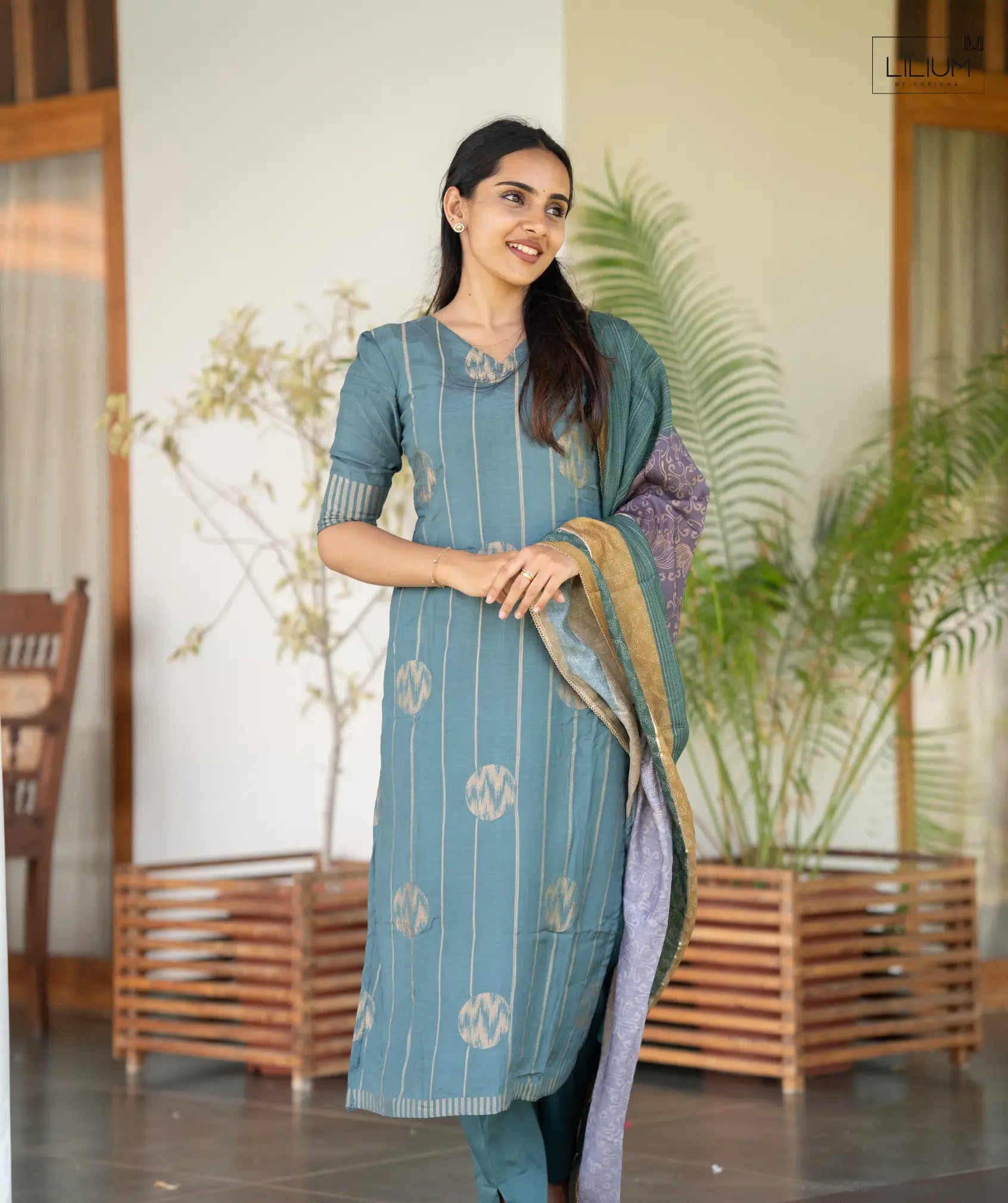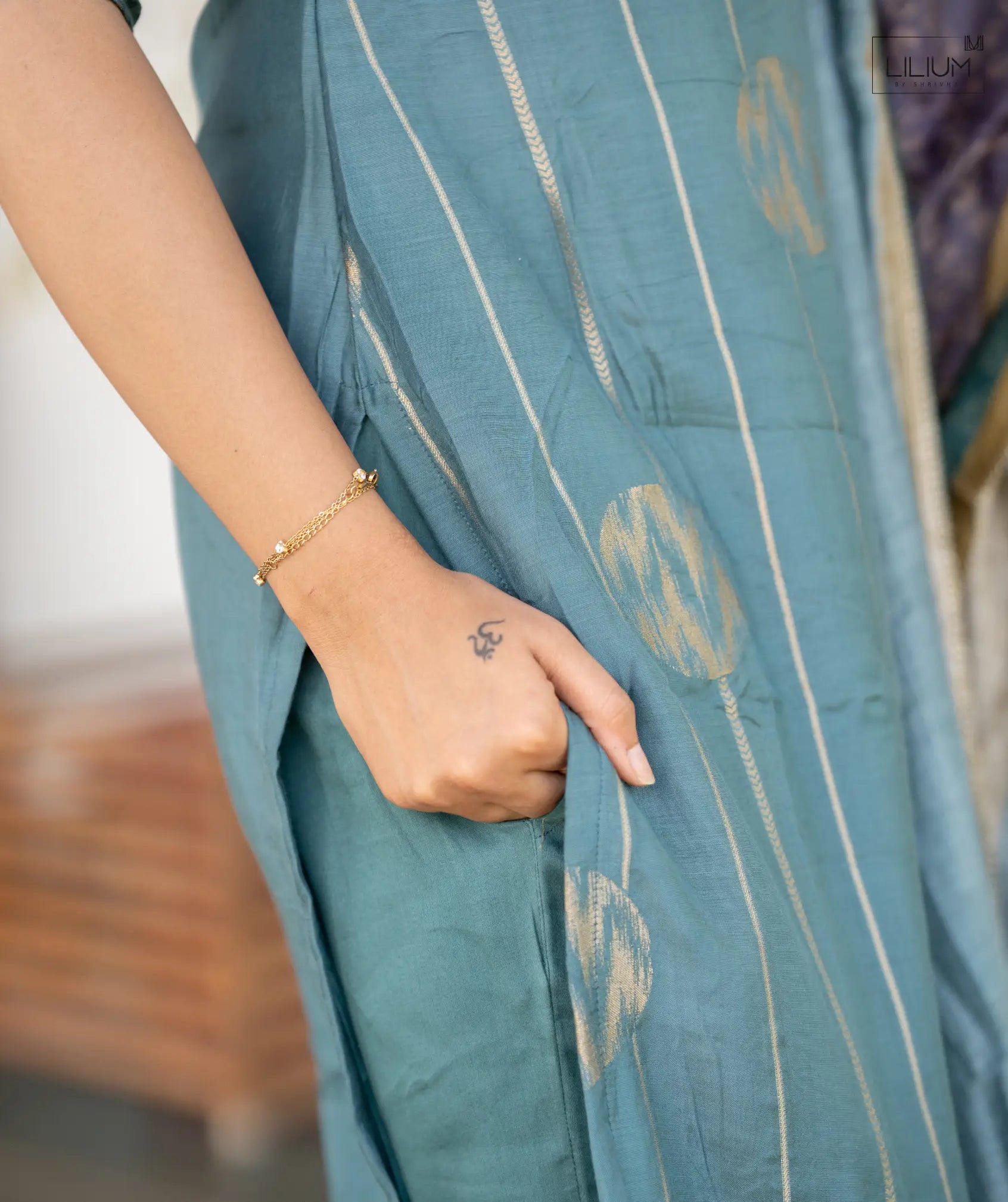 Celeste Jade Muslin Silk 3-Piece Festive Set with Zari