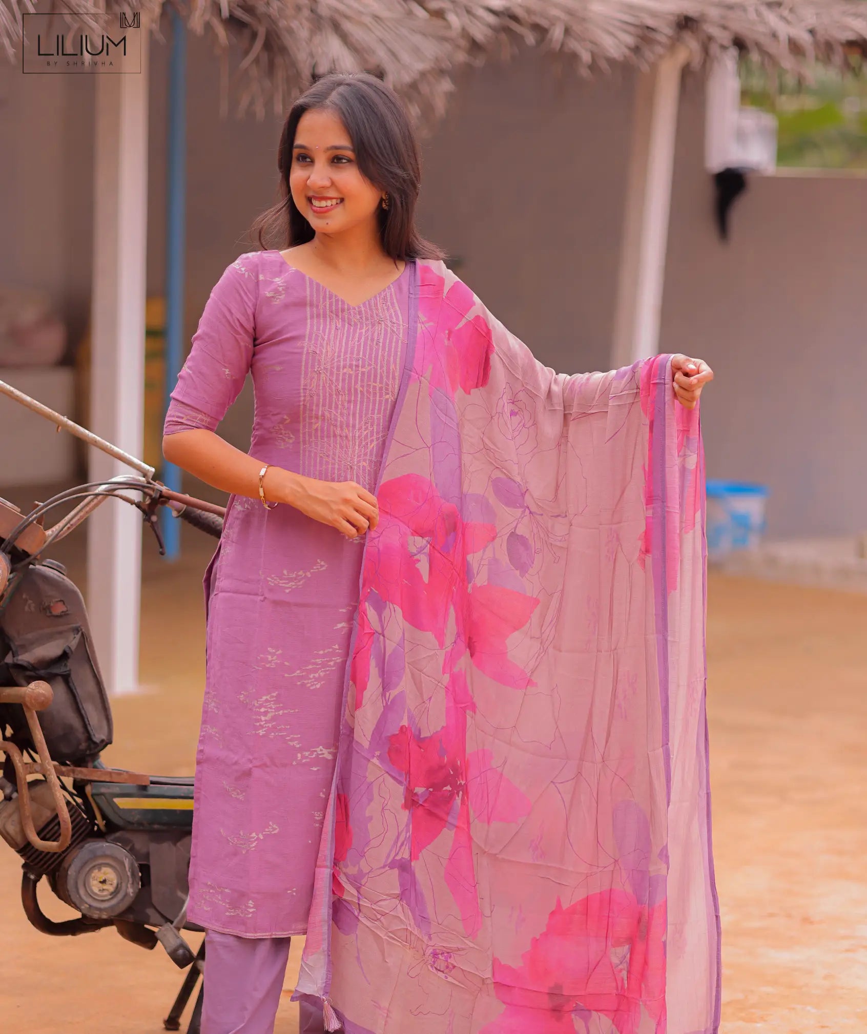 Duchess Lavender Linen Slub 3 Piece Set with Zari