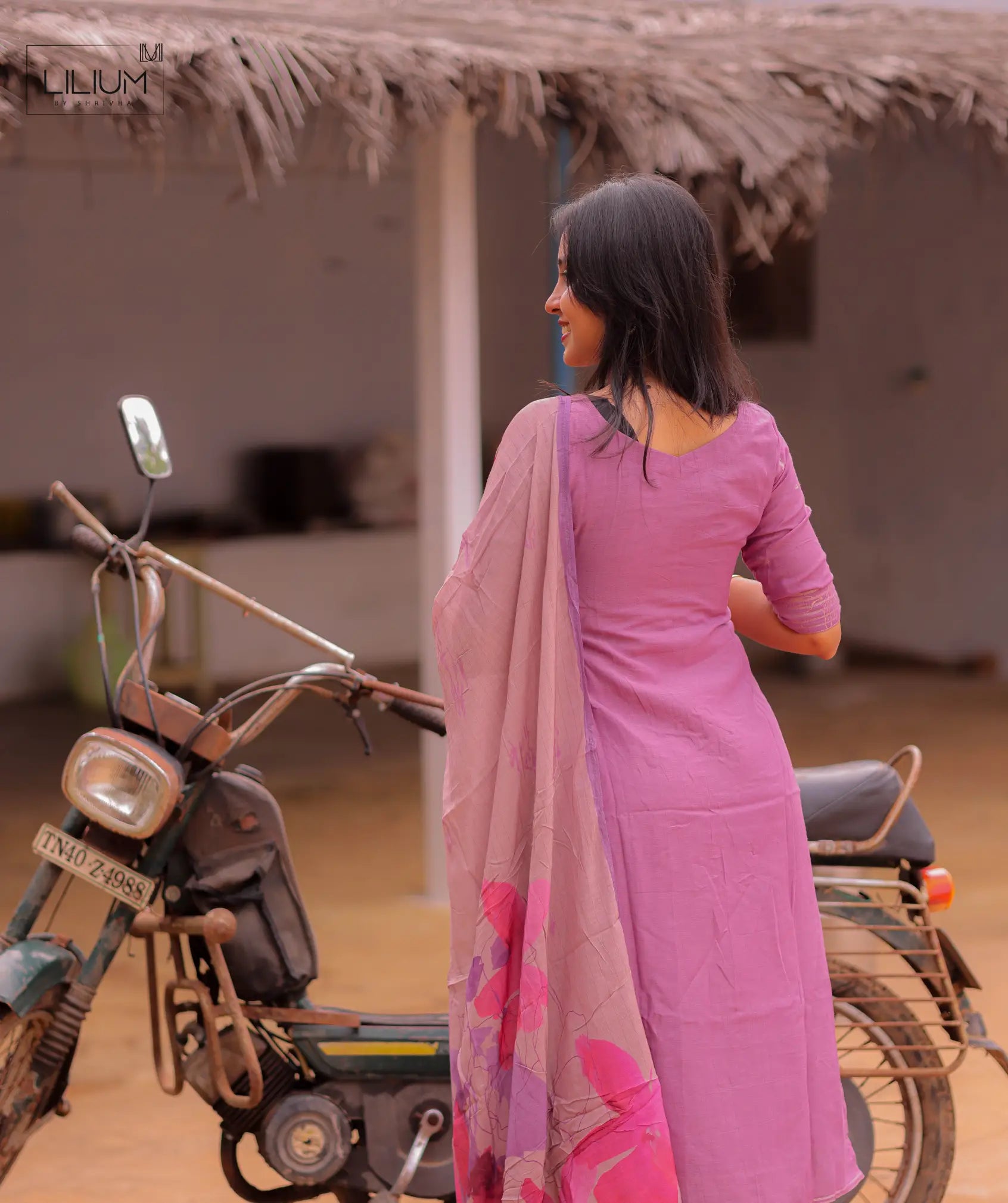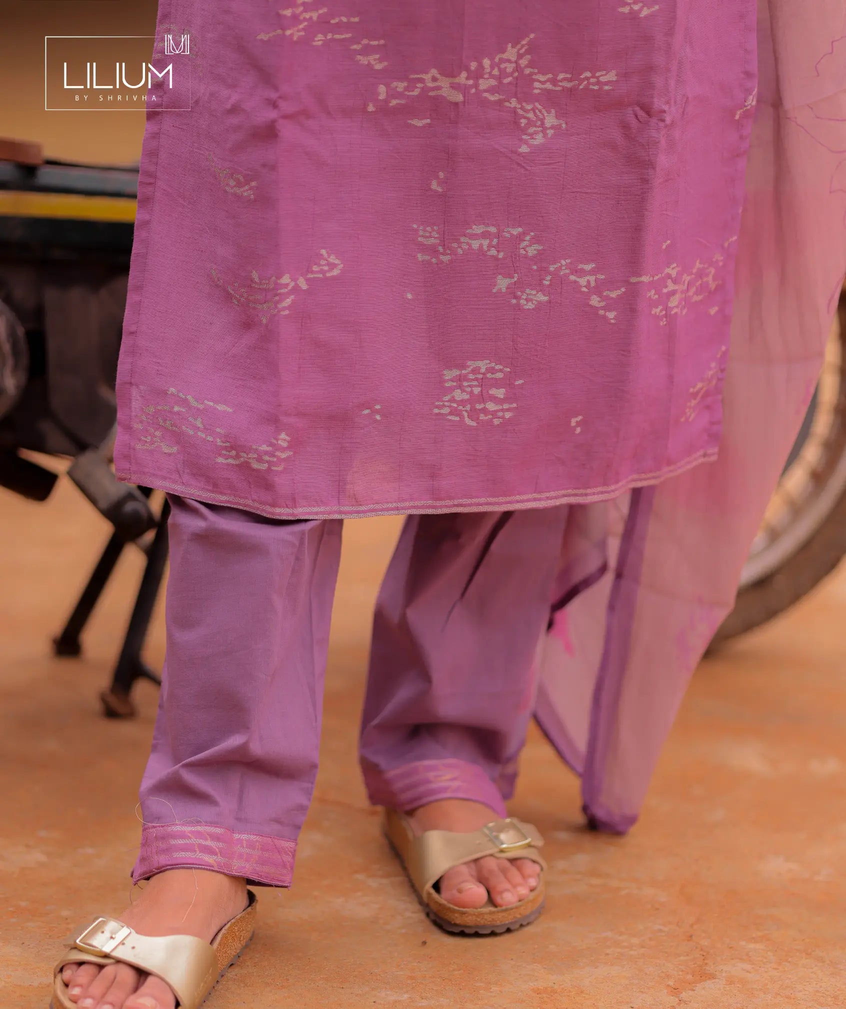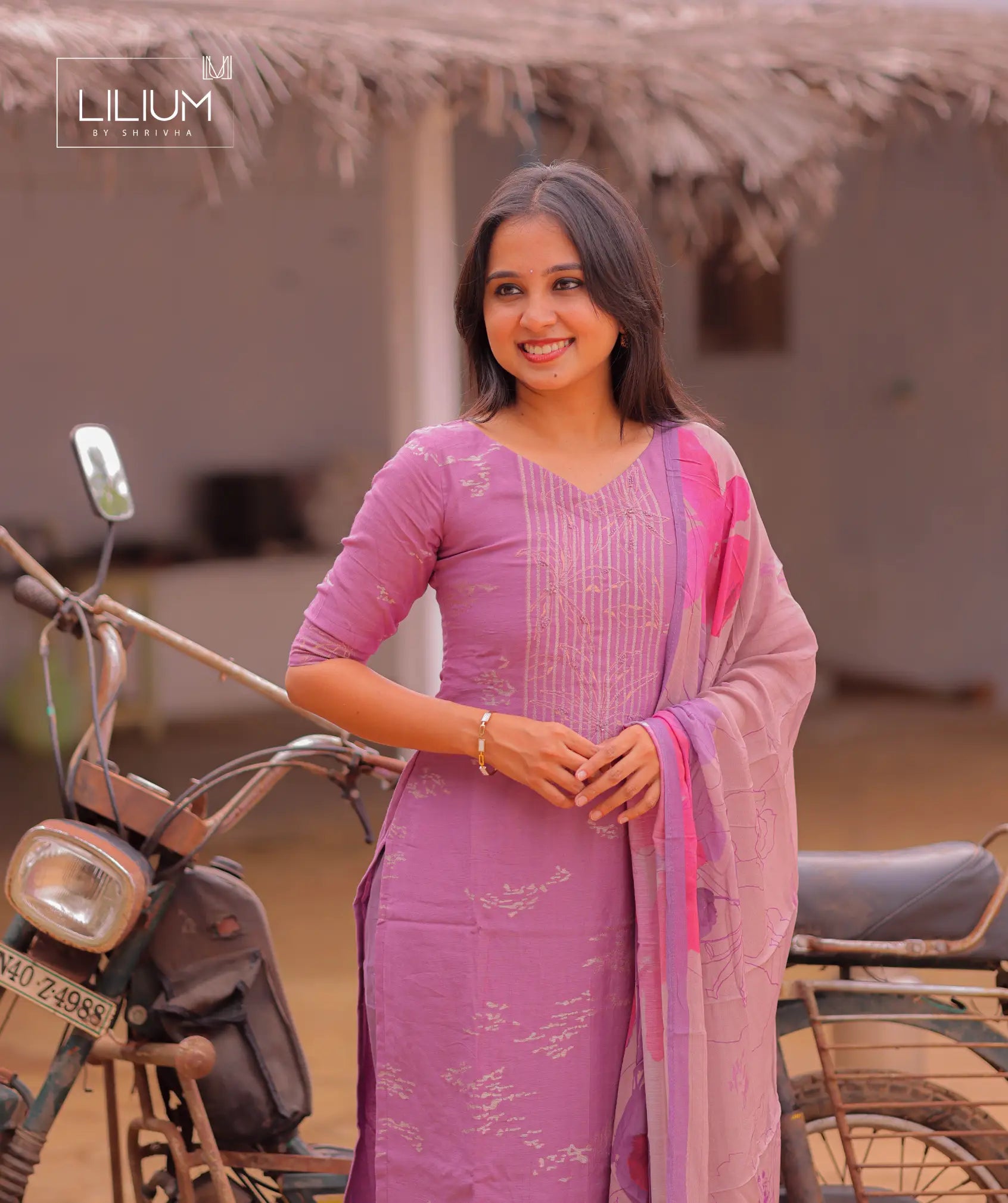 Majestic Lilac Staple Cotton Co-ords with Gold Butta