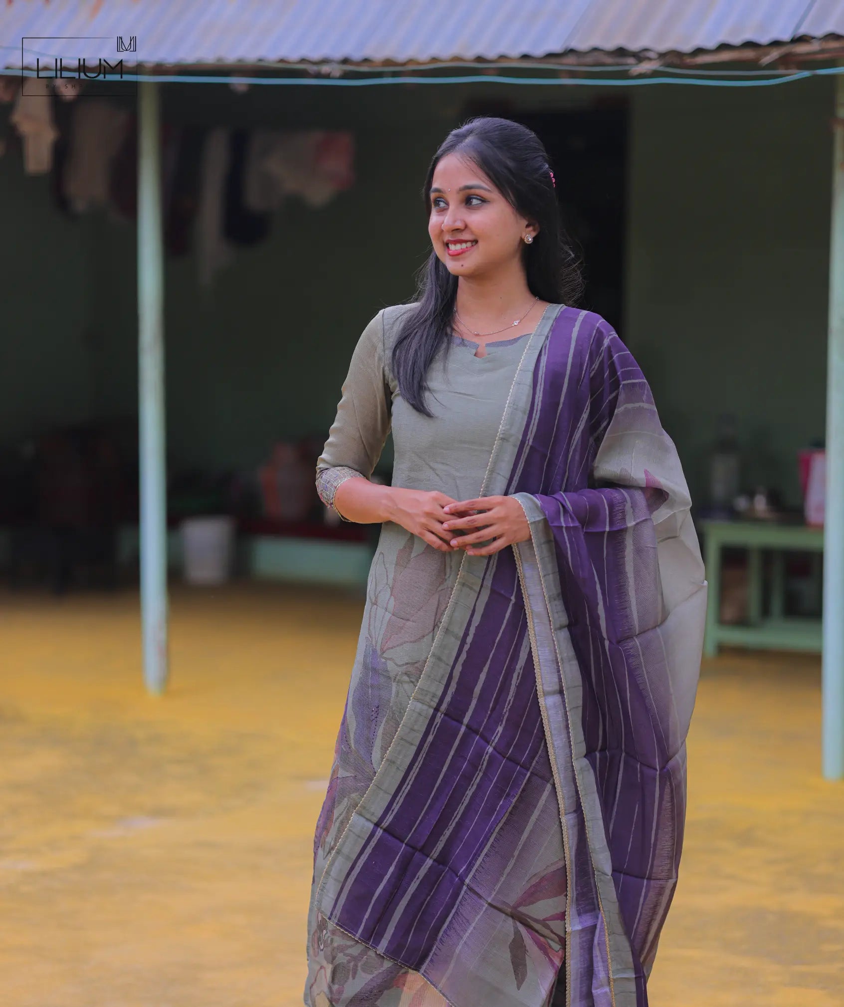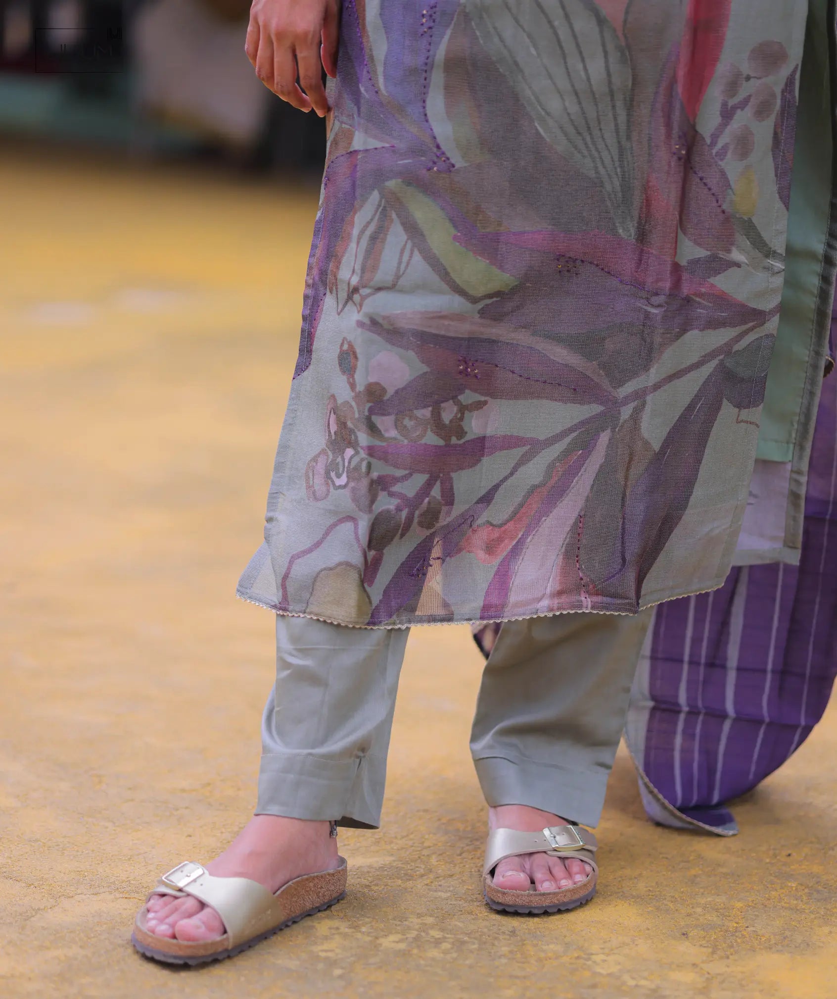 Imperial Lavender Muslin Co-ords Set with Open Slit & Elastic Waist