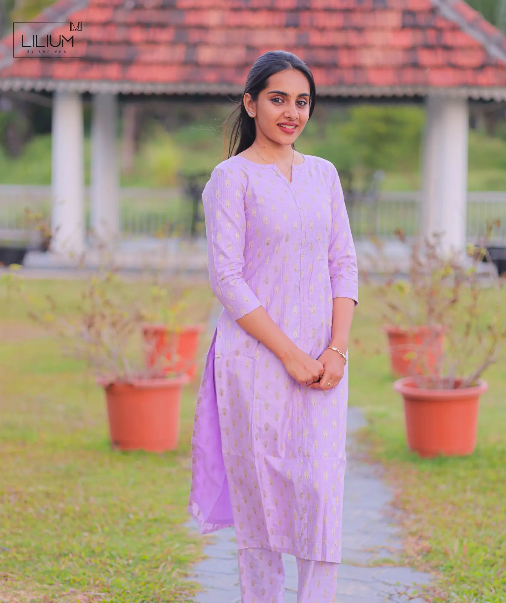 Majestic Lilac Staple Cotton Co-ords with Gold Butta