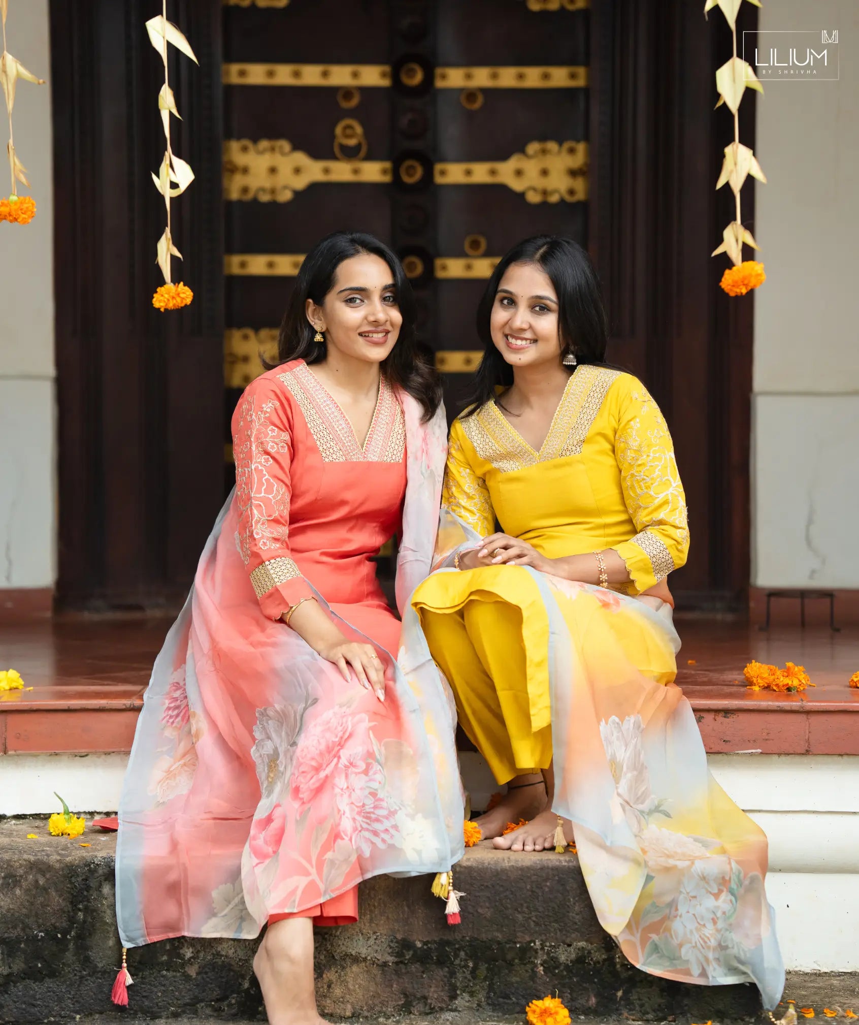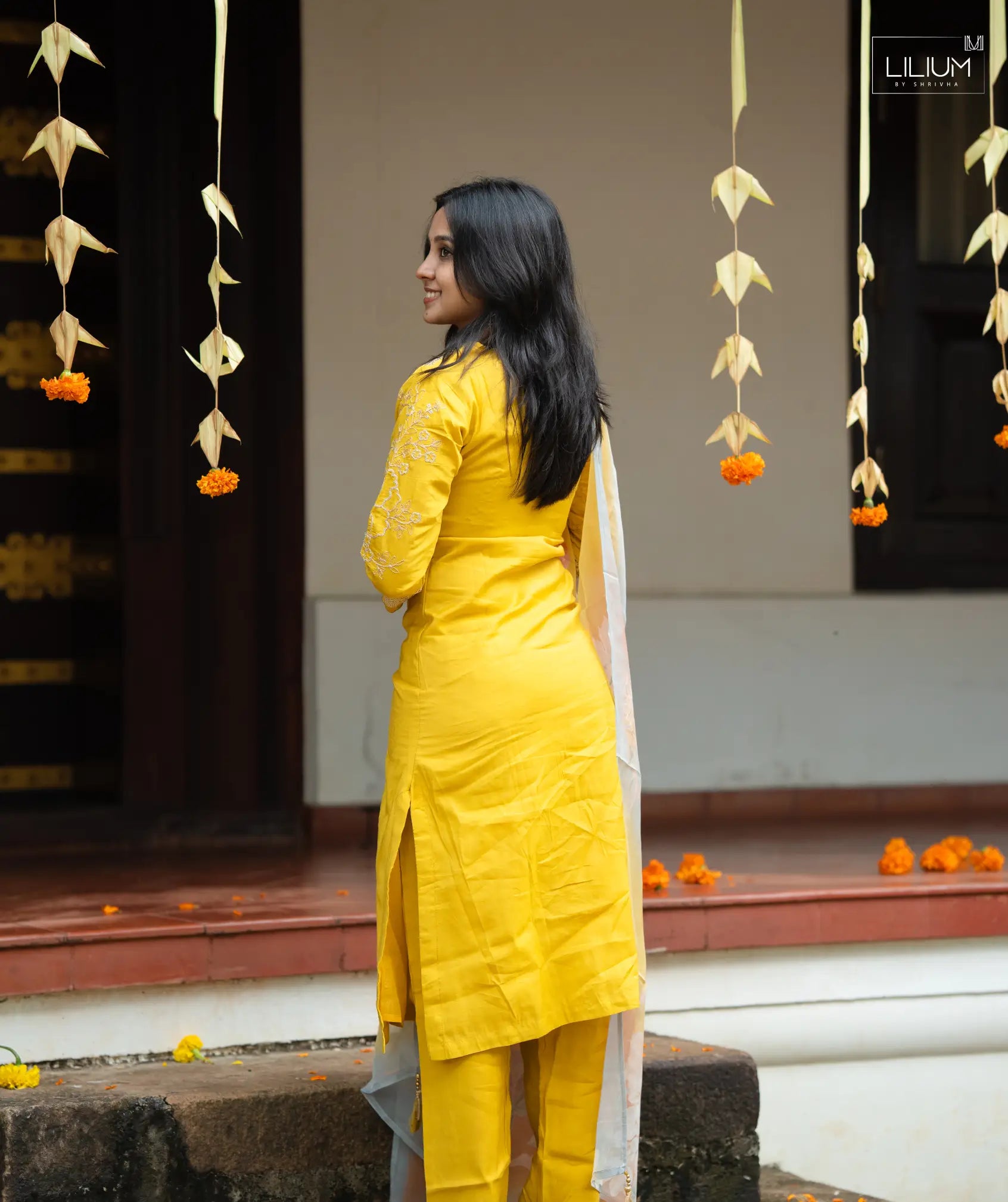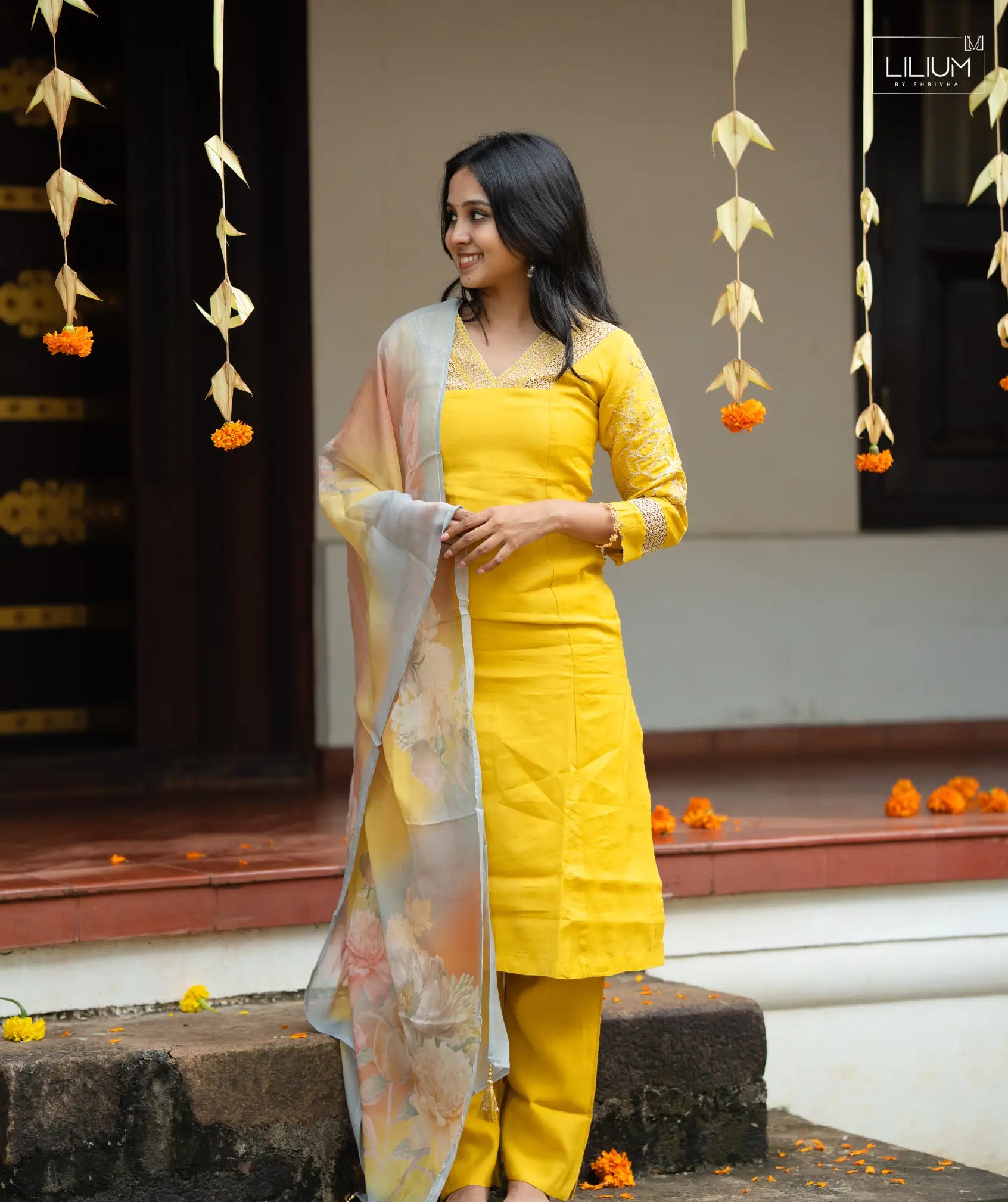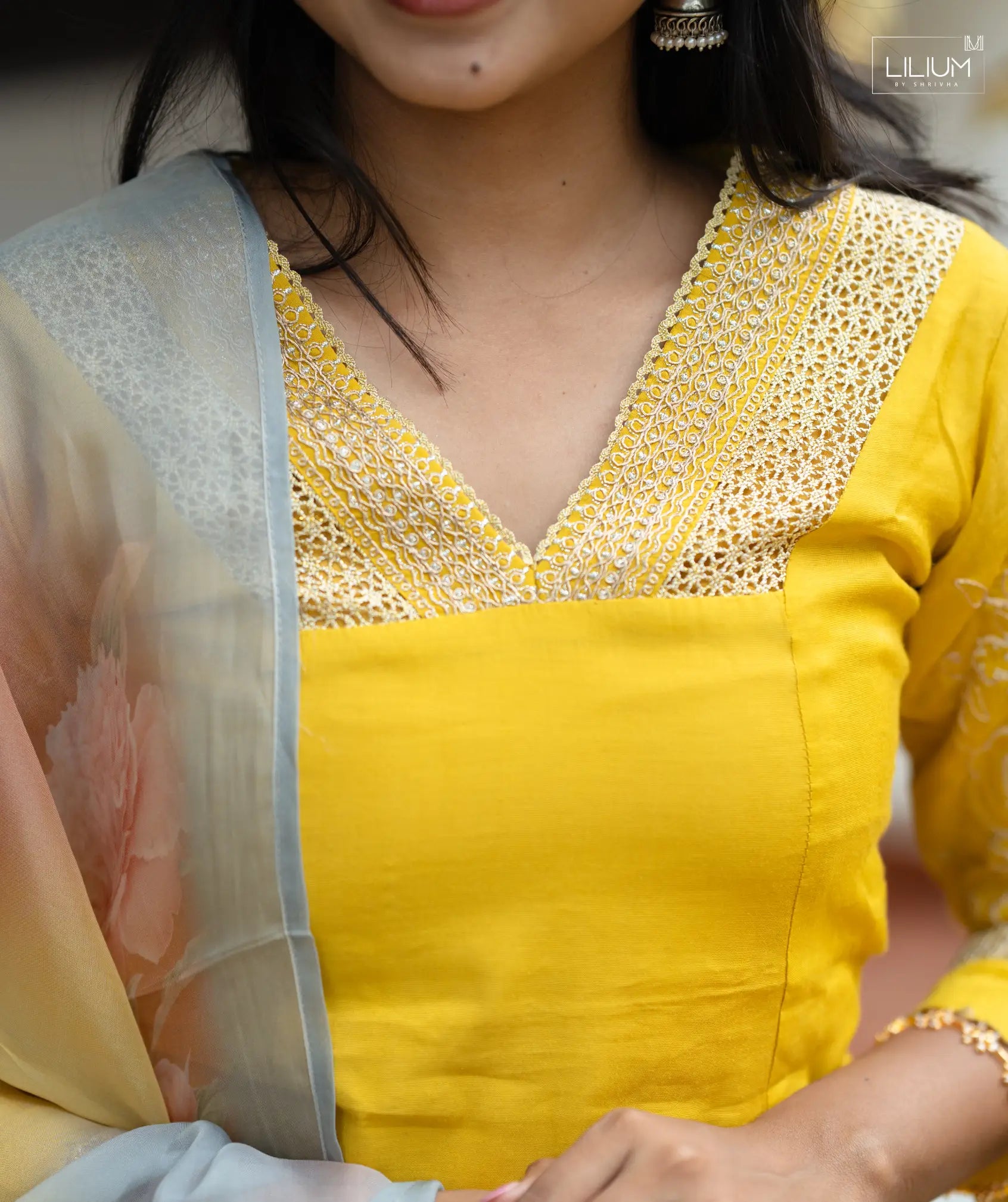 Marigold Majesty Muslin 3-Piece Lace Work Set