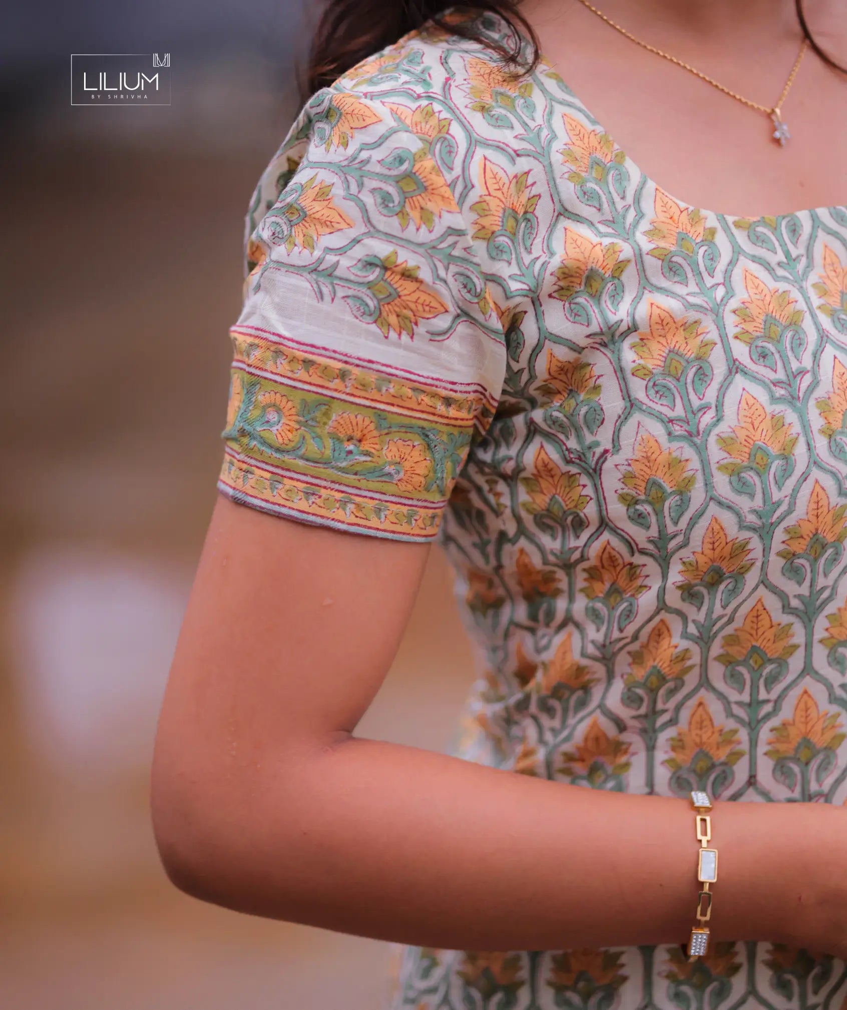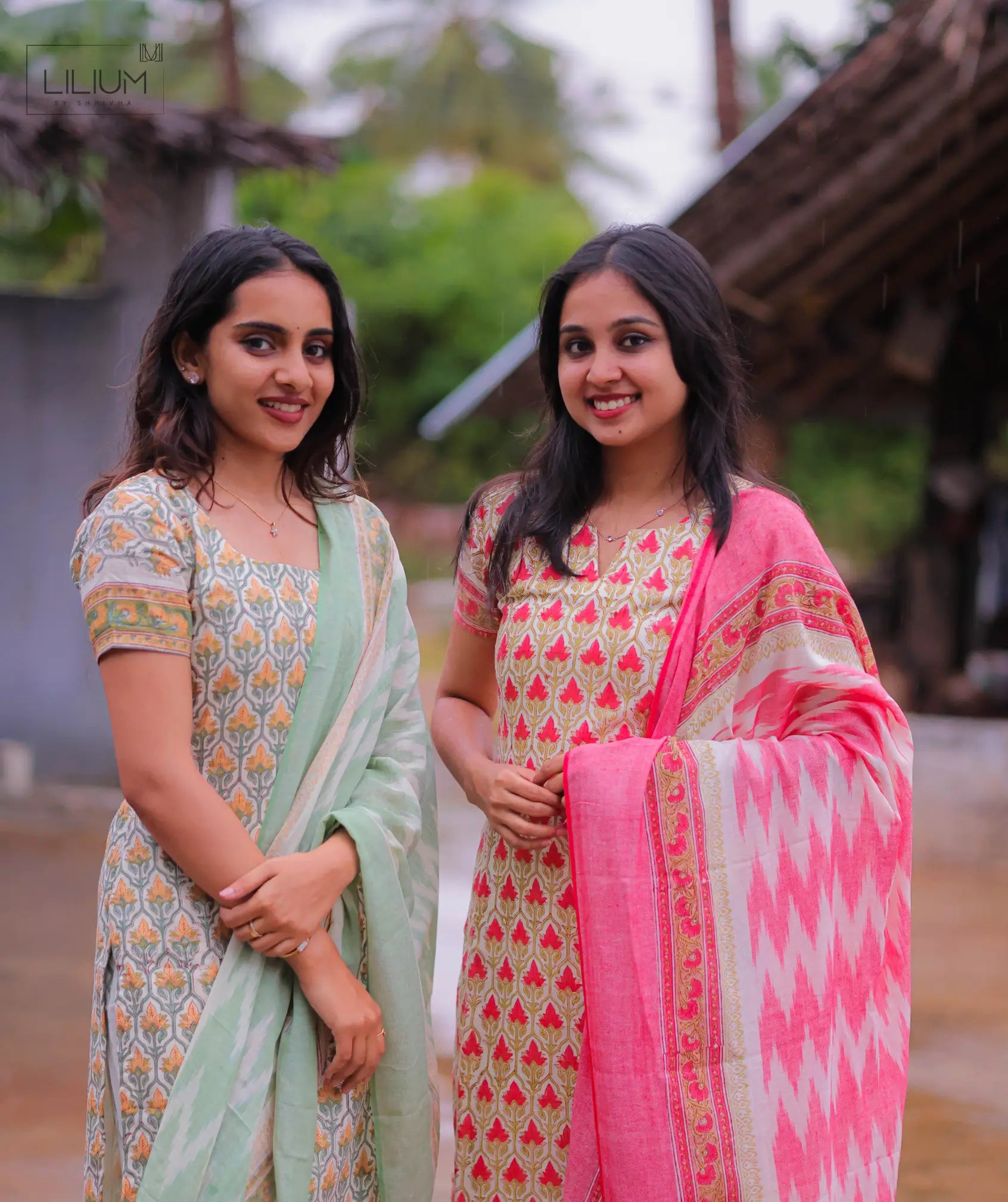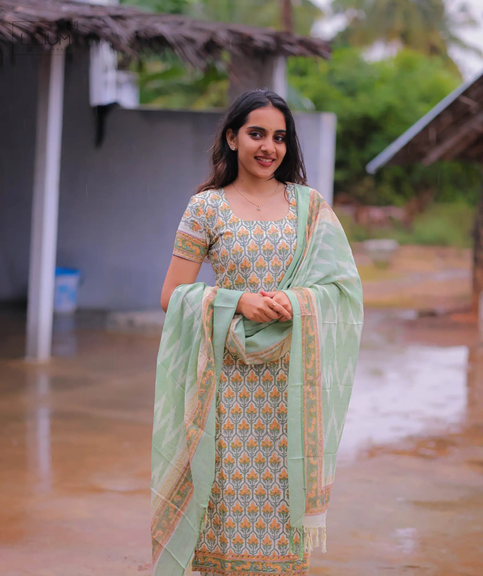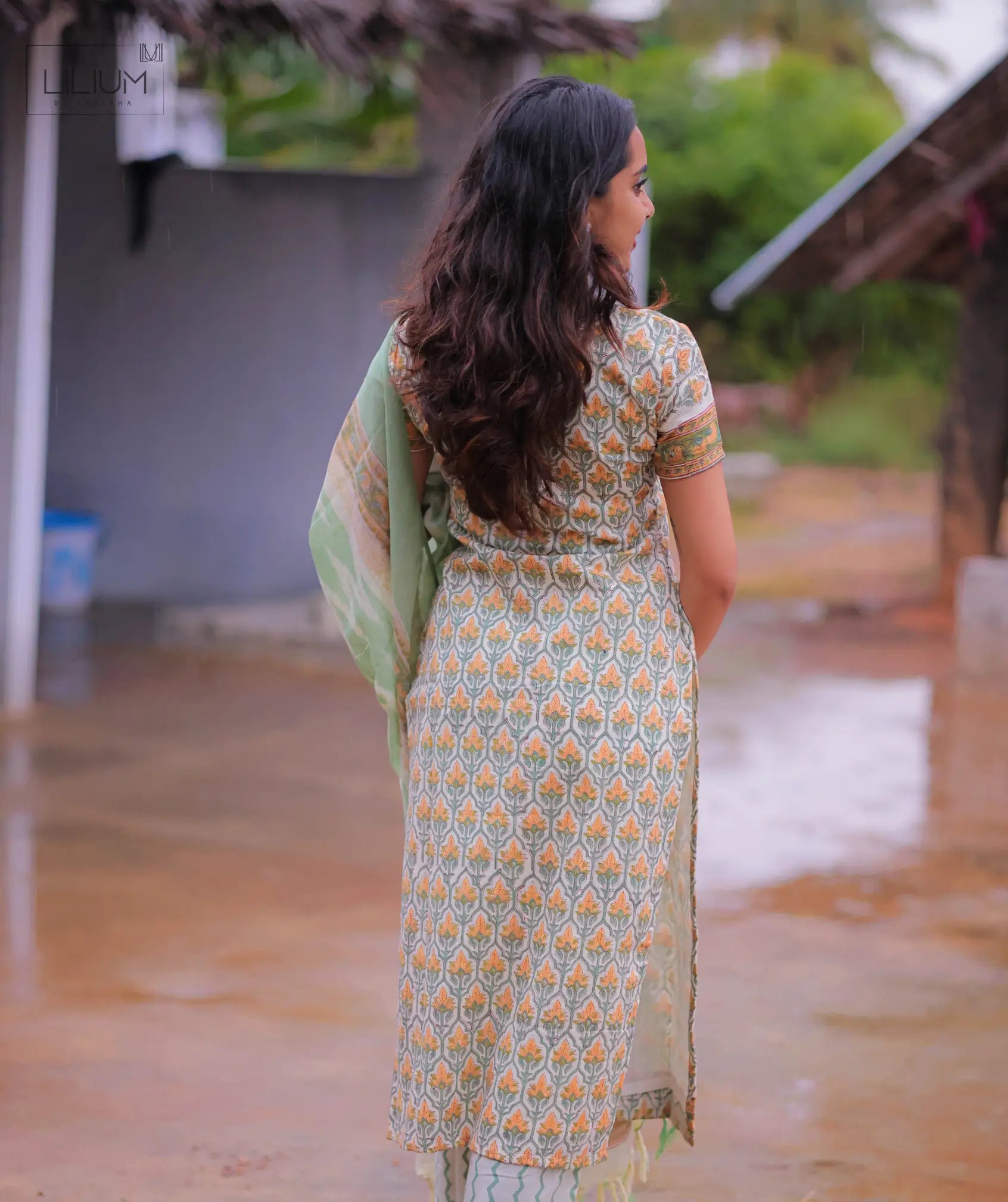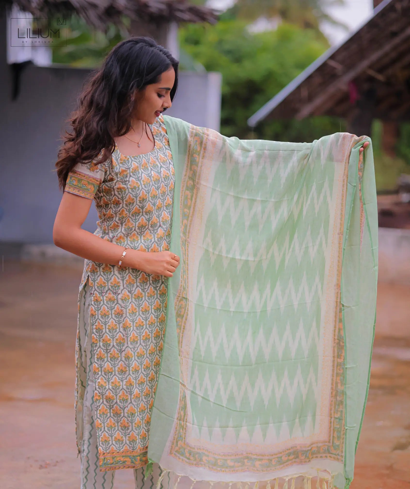 Ornaya Bloom Cotton Slub 3 Piece Kurti Set with Pockets
