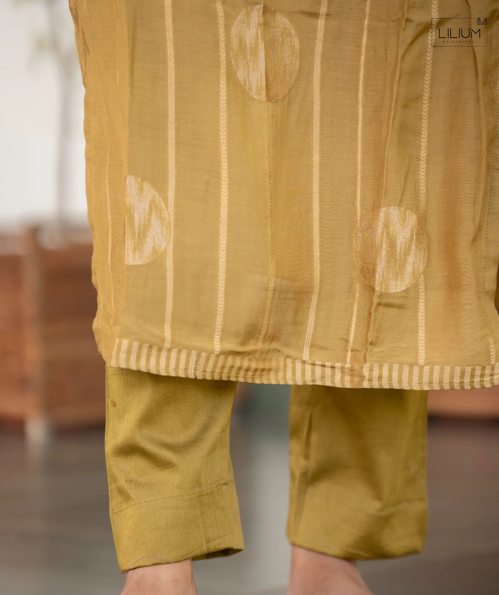 Celebrate timeless tradition with the Regal Gleam Muslin Silk 3-Piece Festive Set with Zari, a perfect balance of elegance and comfort. Crafted from luxurious muslin silk enhanced with intricate zari work, this set includes a 46-inch long top with open slit, a full-elastic bottom, and a flowing dupatta for a complete festive look. The elbow sleeves add a graceful touch, while functional pockets bring modern practicality to ethnic wear. Designed in the radiant Regal Gleam color, this ensemble stands out as a designer festive outfit for Diwali, weddings, and cultural celebrations. The lightweight fabric ensures comfort during long occasions, while the zari embellishments add a festive sparkle. Whether styled for a party, festive gathering, or traditional event, this set brings sophistication and versatility. A must-have ethnic festive co-ord set for women, blending contemporary style with cultural charm.