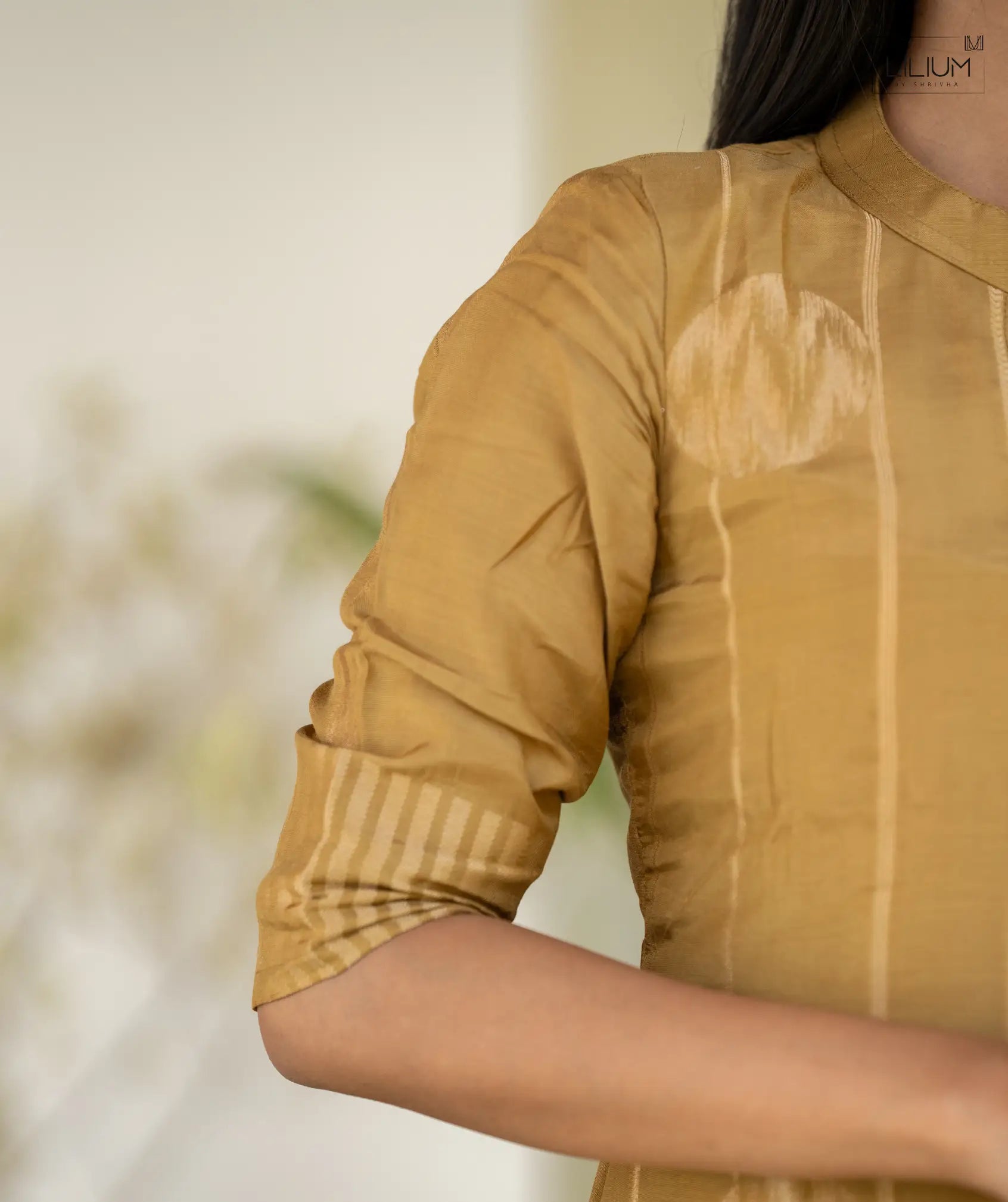 Dynasty Gold Chanderi Silk Kurti with Shawl – Elbow Sleeve Style