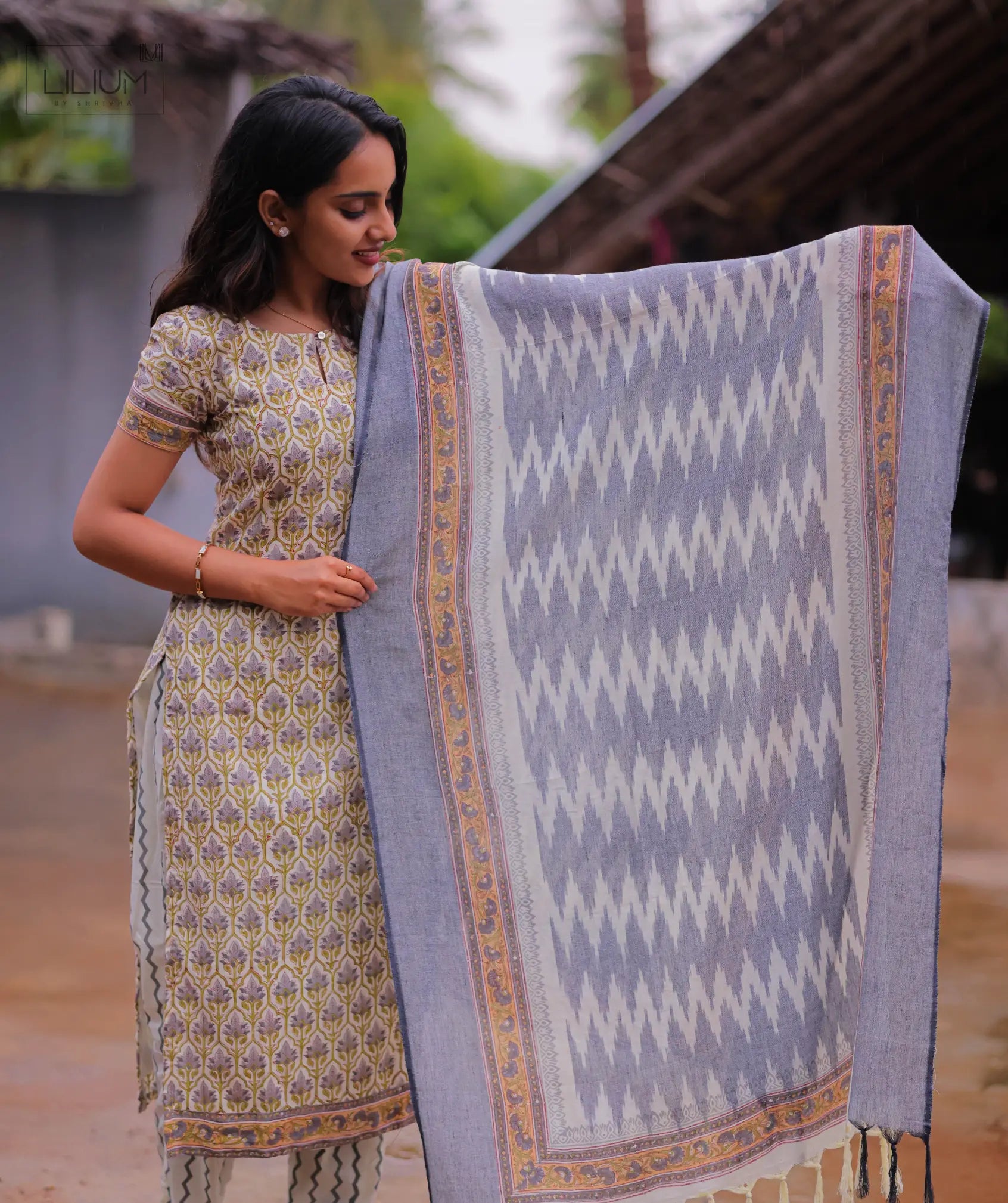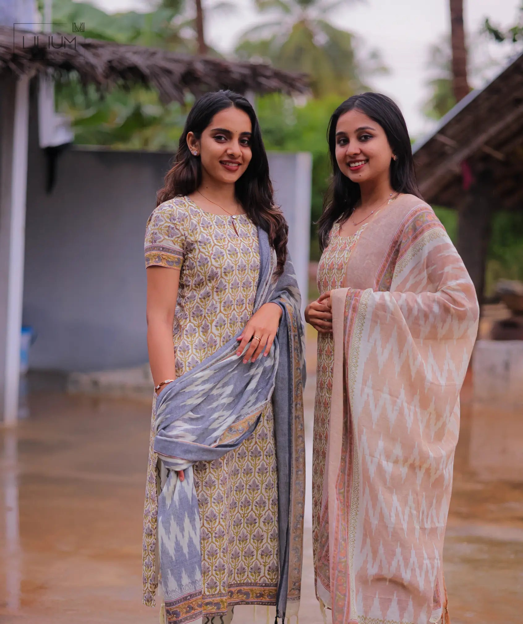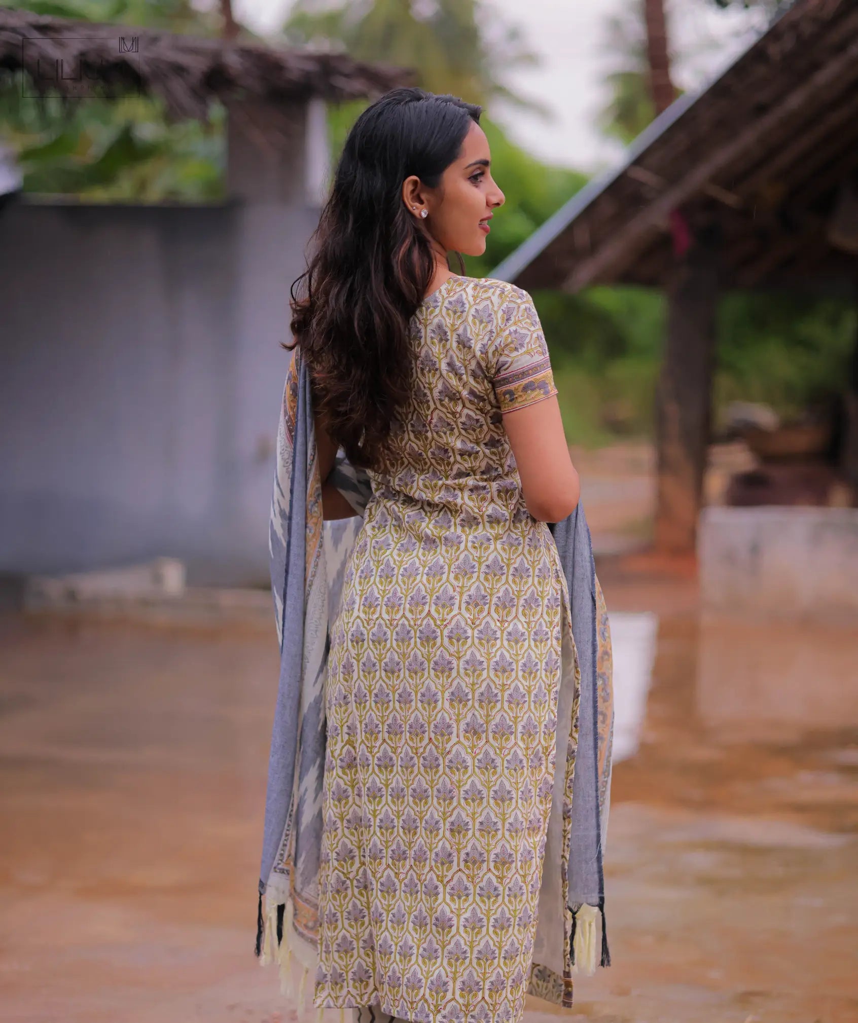 Velora Crest Cotton Slub 3 Piece Kurti Set with Lining