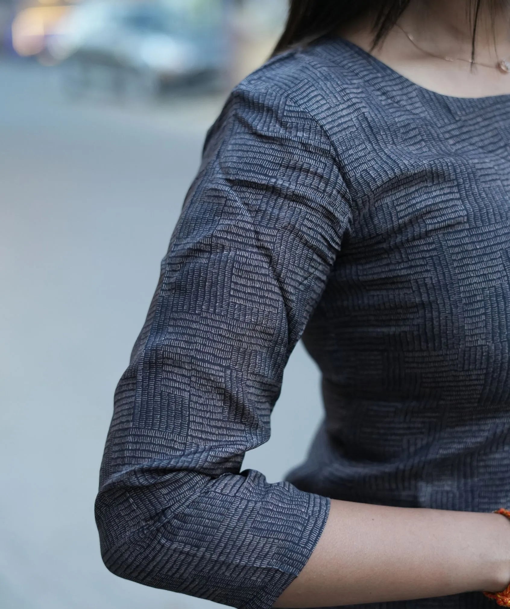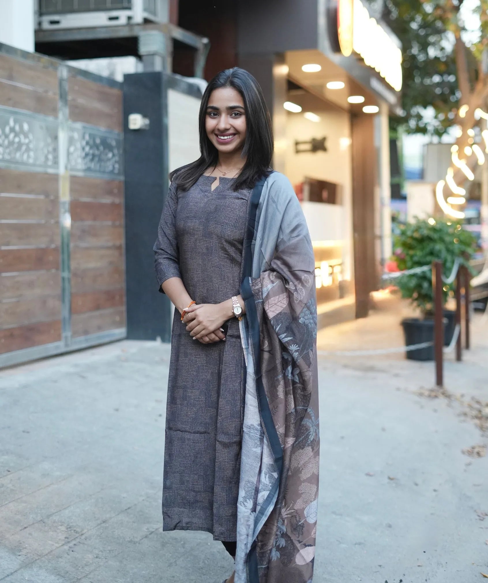 Step into effortless elegance with this Midnight Slate Grey Muslin Kurti Set with Shawl, designed for relaxed yet refined casual wear. Crafted from soft and breathable muslin fabric, the kurti offers comfort throughout the day while maintaining a graceful drape. The 45-inch top length creates a flattering silhouette, complemented by 3/4th sleeves for a balanced, versatile look.