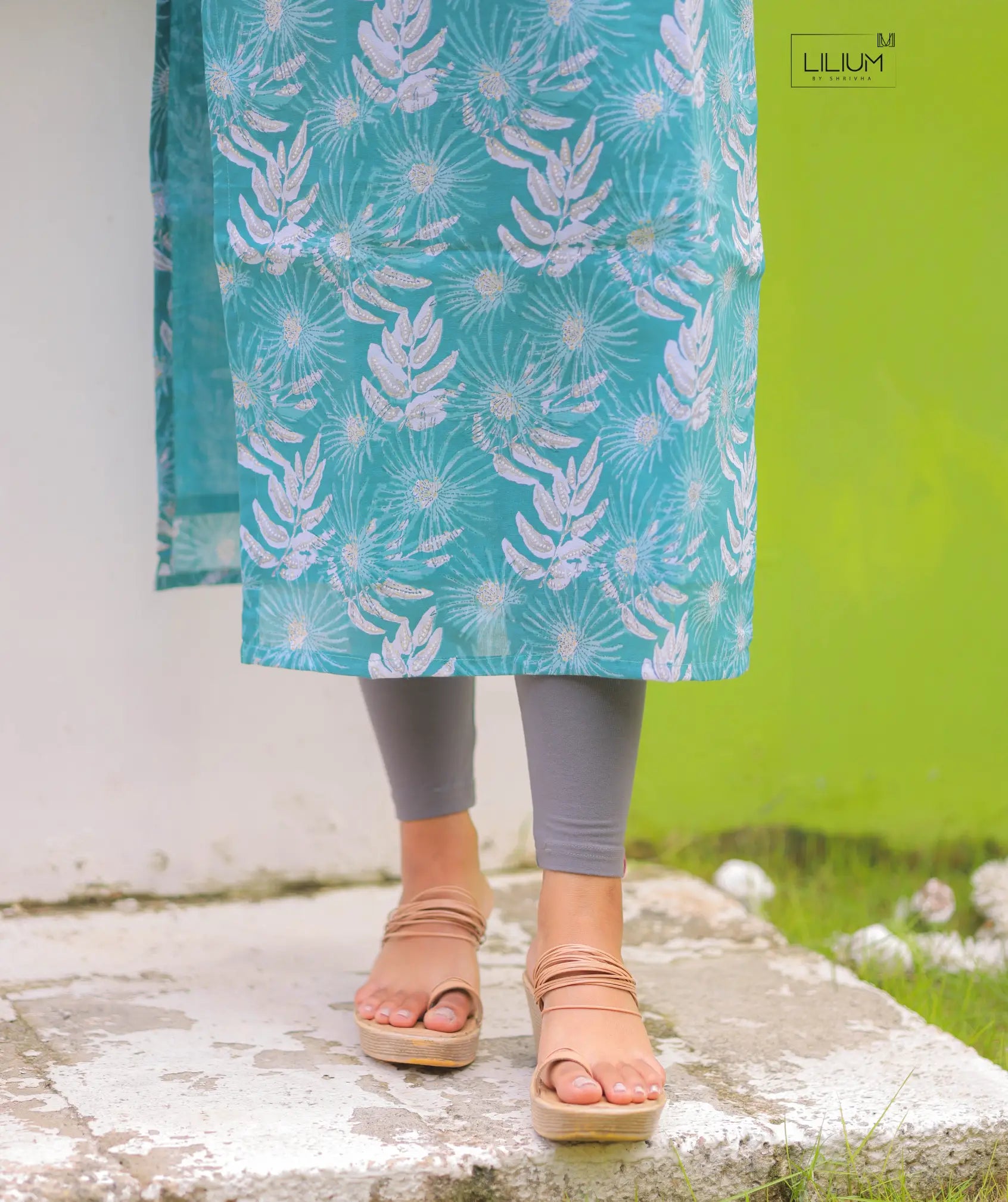 Bluebell Charm Cotton Kurti with Elegant Open Slit Design