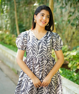 Black & White Zebra Maxi Dress in Muslin Shimmer Fabric