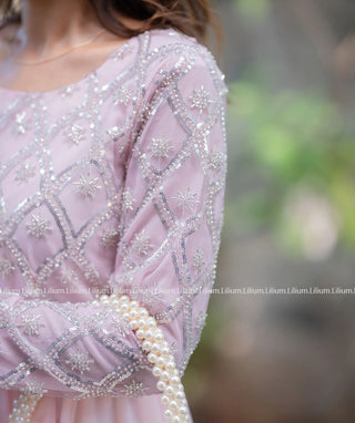 Elegant Soft Pink Georgette Gown with Sequin Embroidery