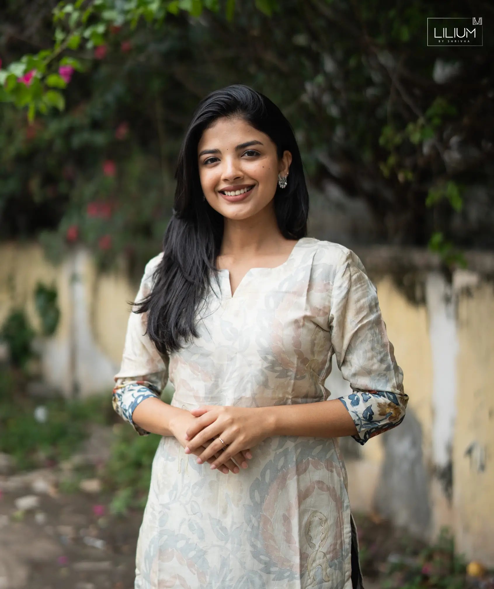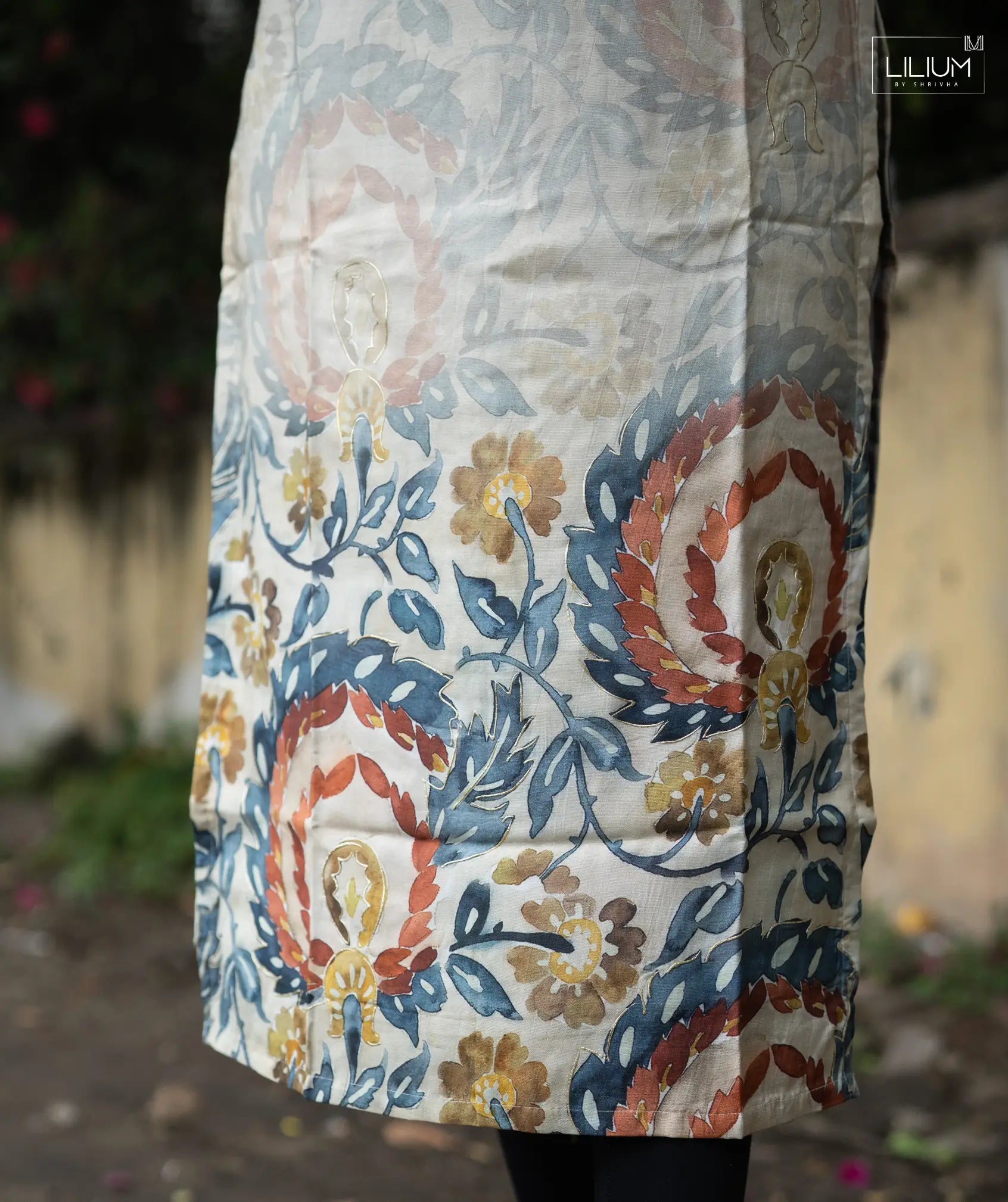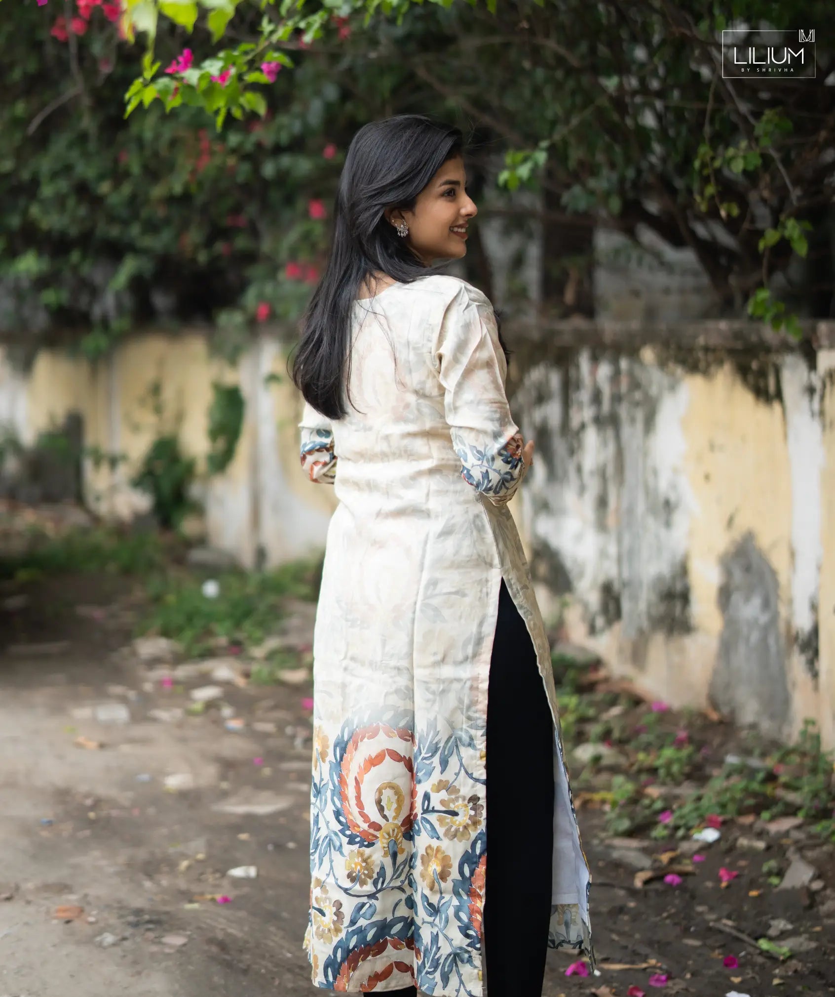 Ecru Floral Muslin Foil Print Kurti with 3/4 Sleeves