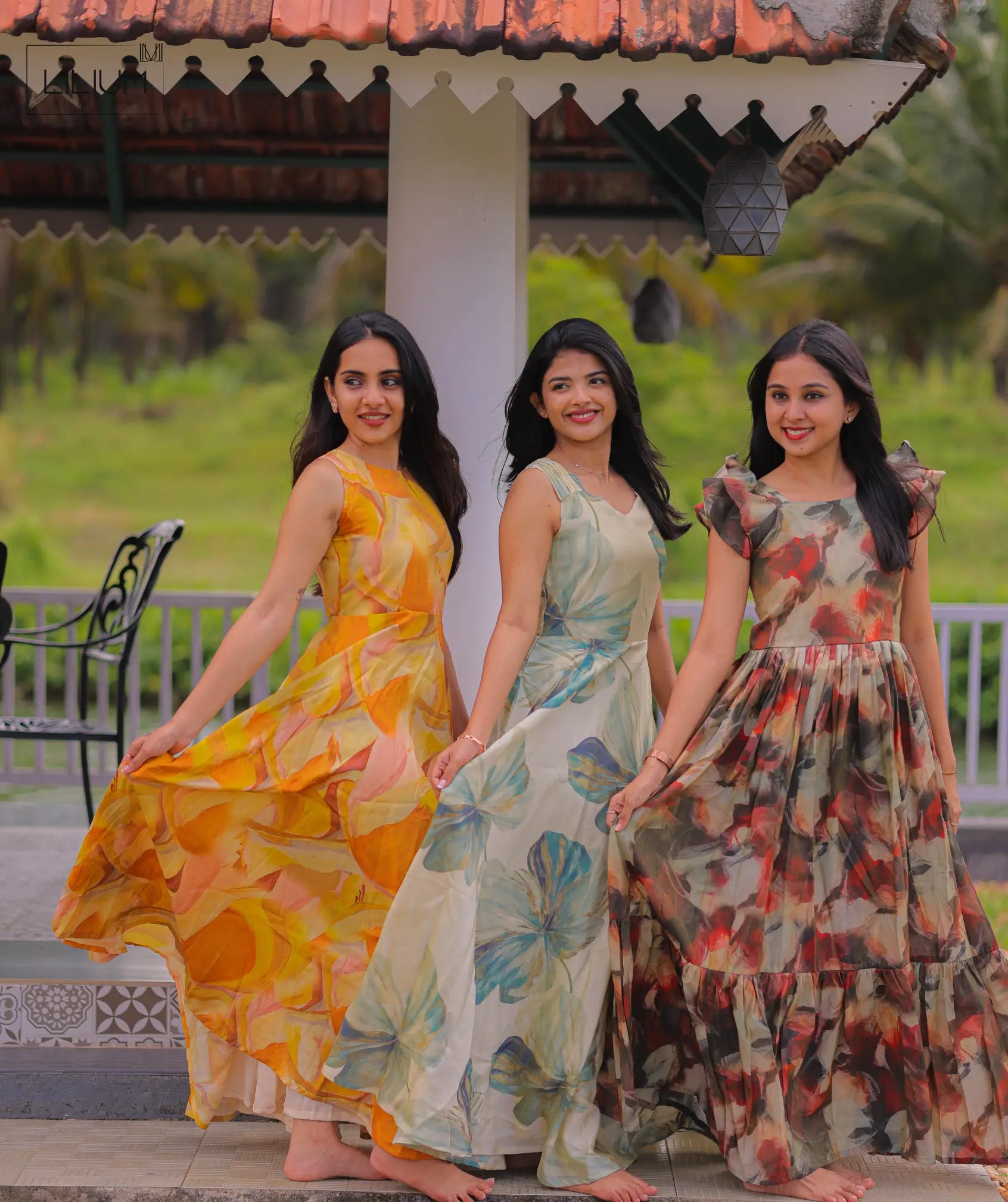 Perfect for those who love floral maxi dresses, sleeveless maxi outfits, and shimmer fabric designs. A beautiful blend of comfort and contemporary charm.