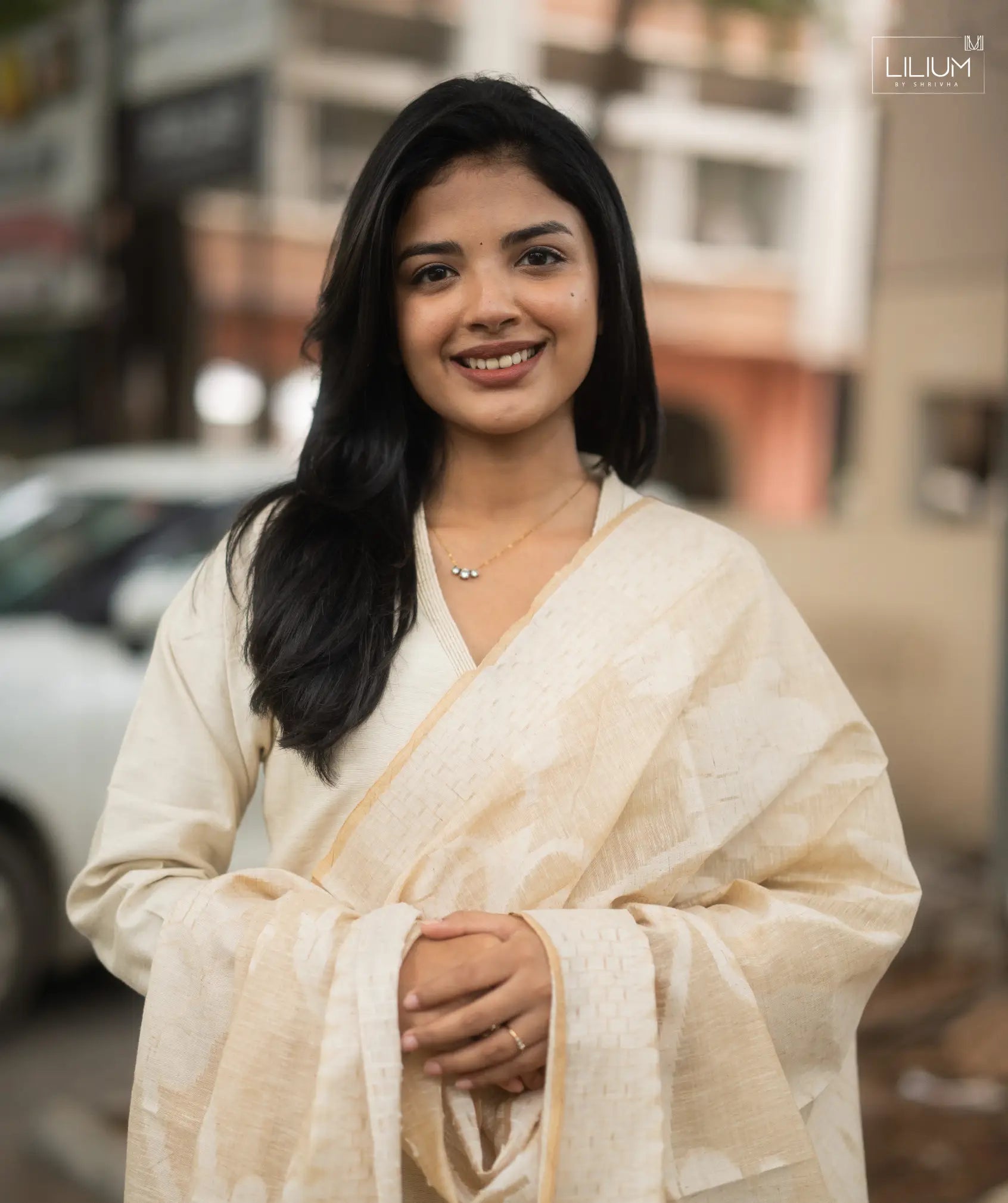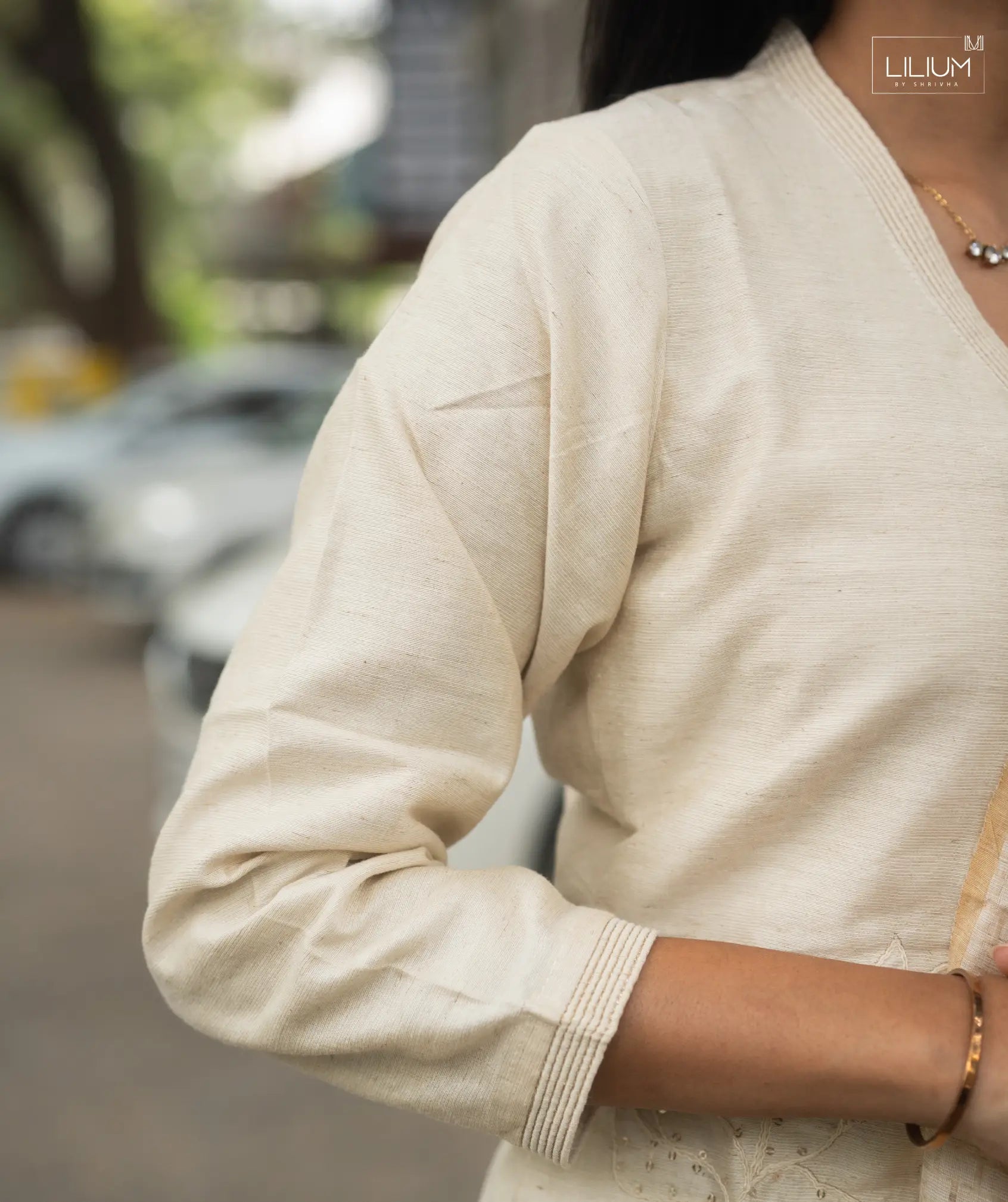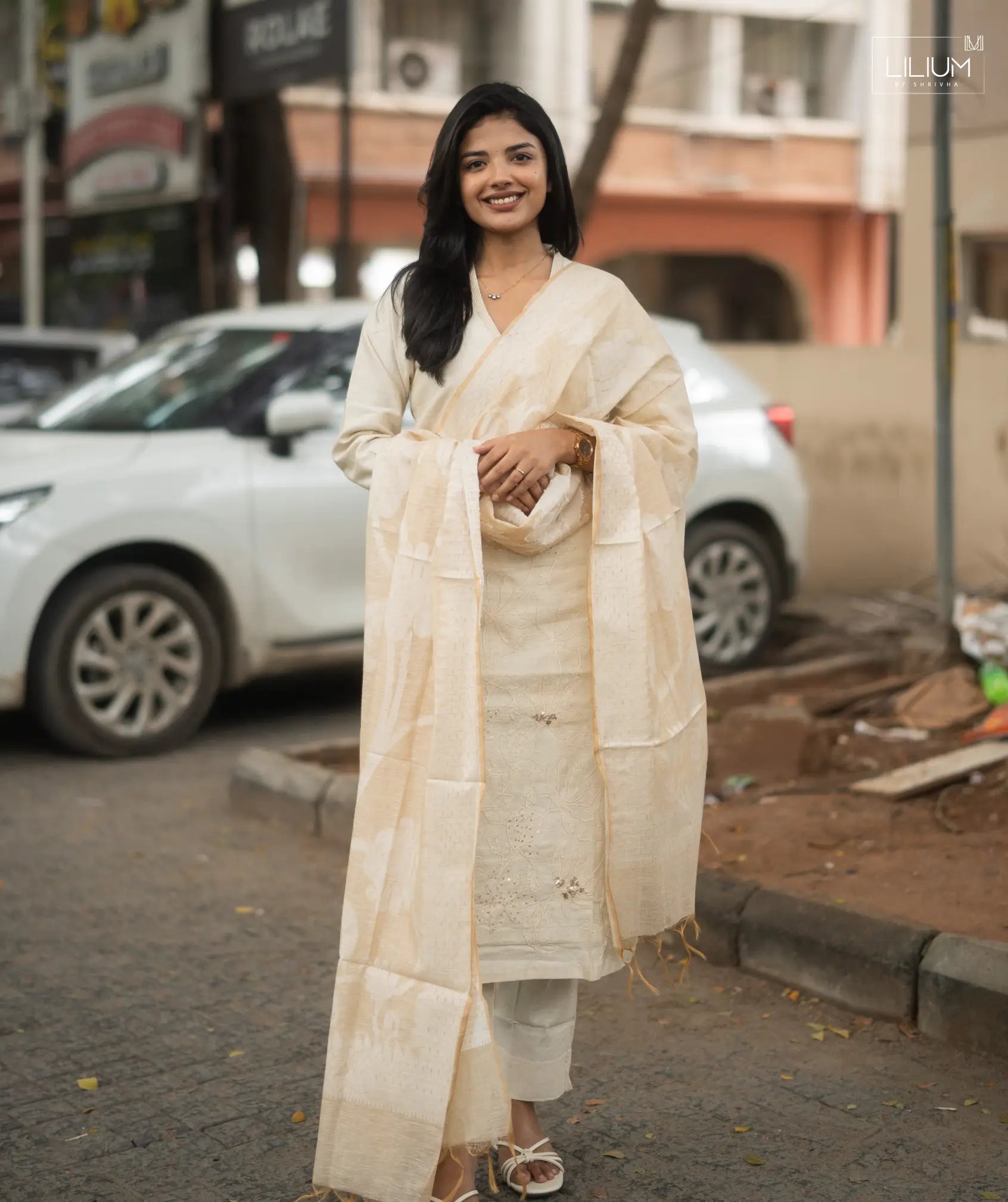 Almond Cream Khadi Cotton 3-Piece Set with Full Elastic