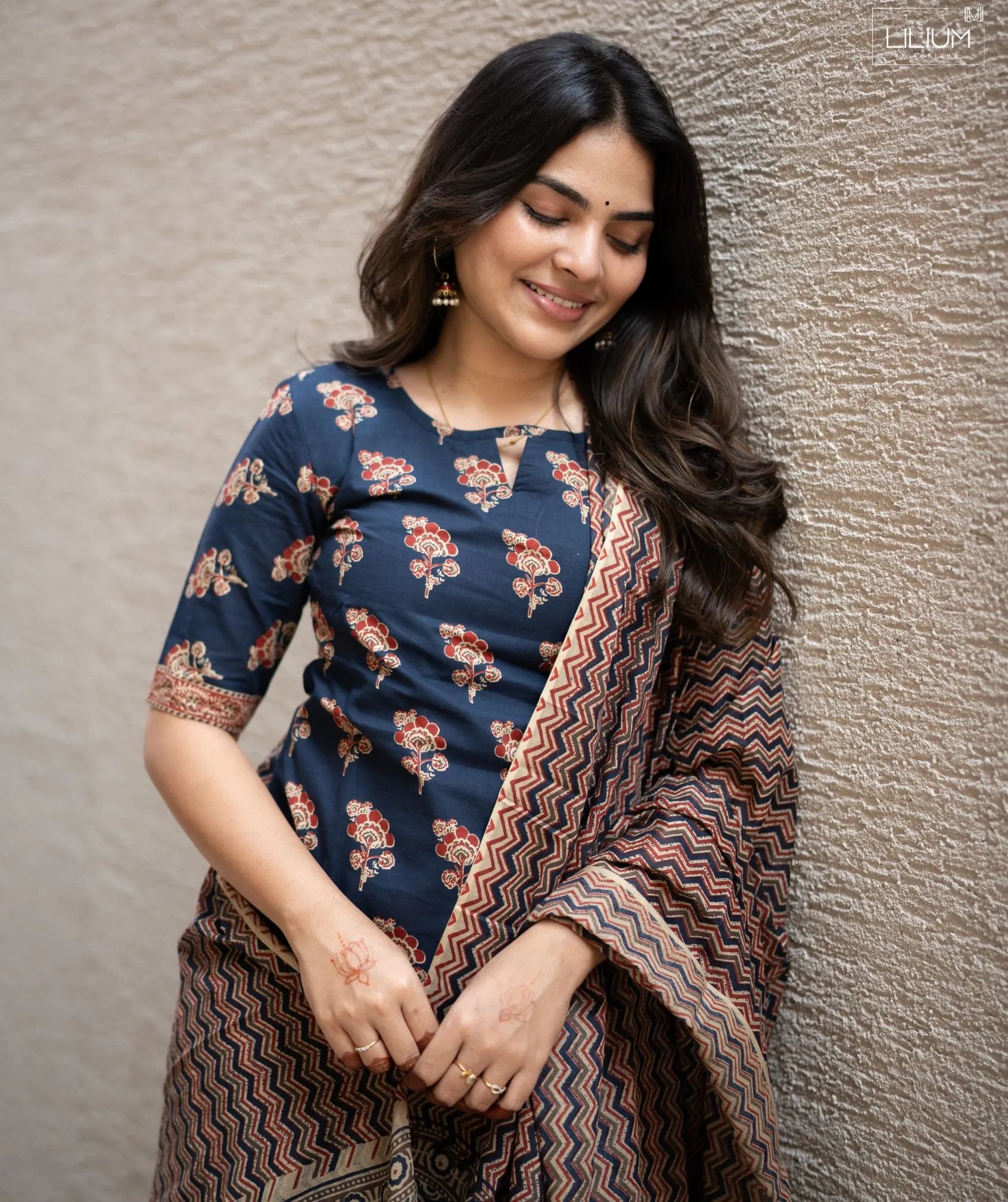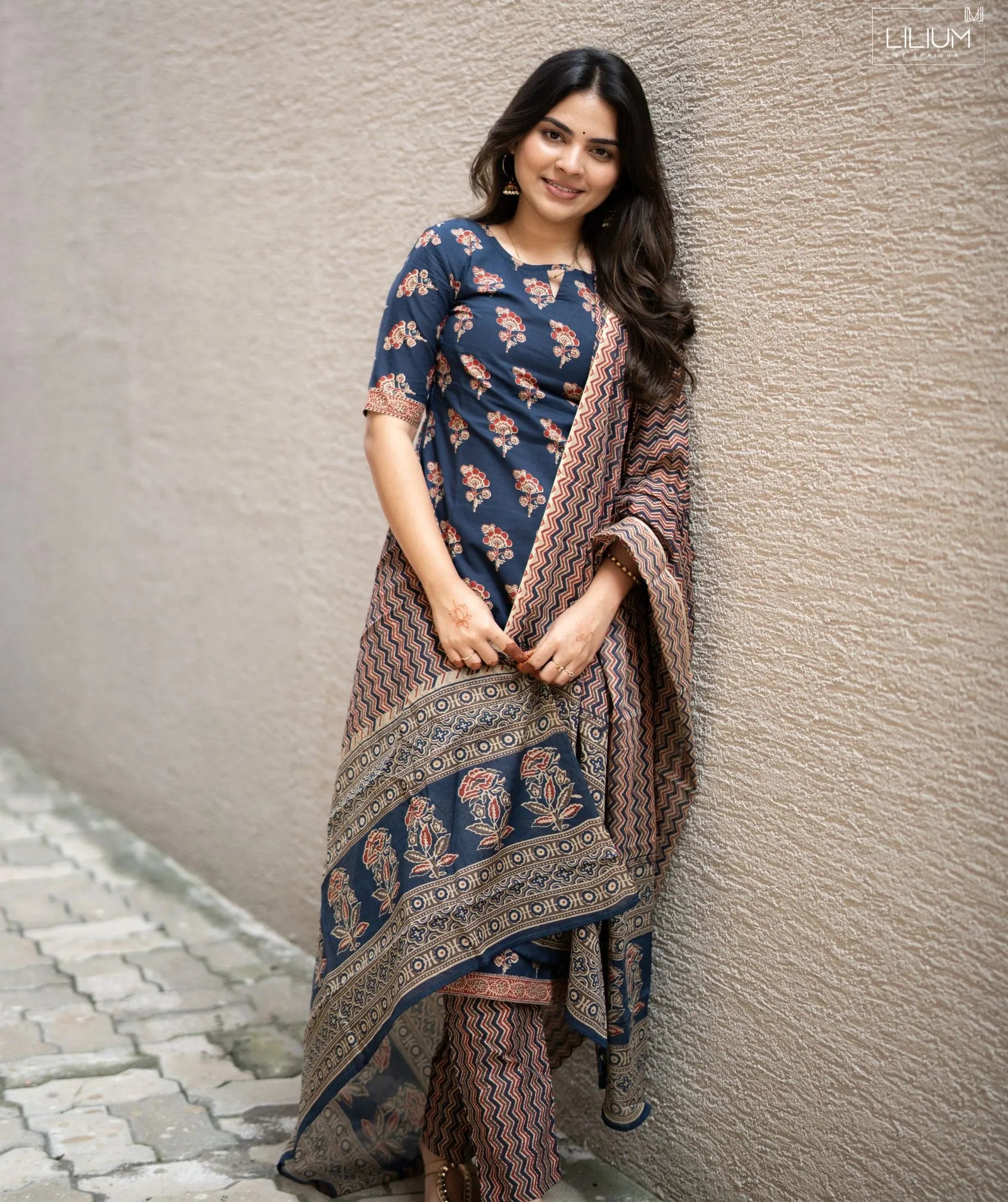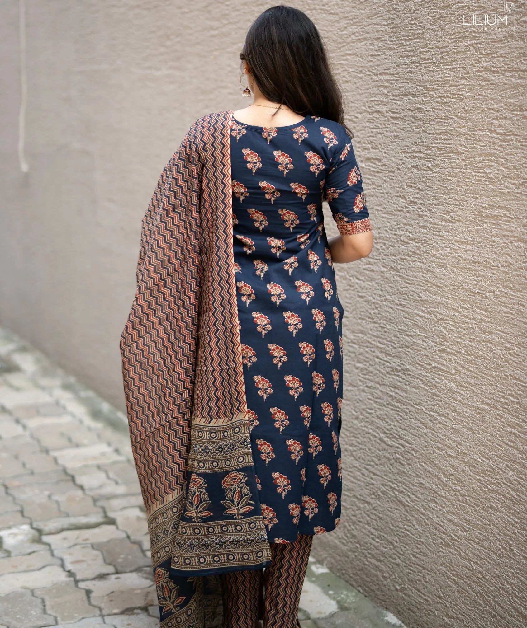 Step into effortless style with the Indigo Noir Blossom Handloom Cotton 3-Piece Set, designed for everyday elegance. Crafted from breathable handloom cotton, this set ensures comfort while maintaining a refined look. The 44-inch top length offers a flattering silhouette, complemented by elbow-length sleeves for a balanced, versatile style.