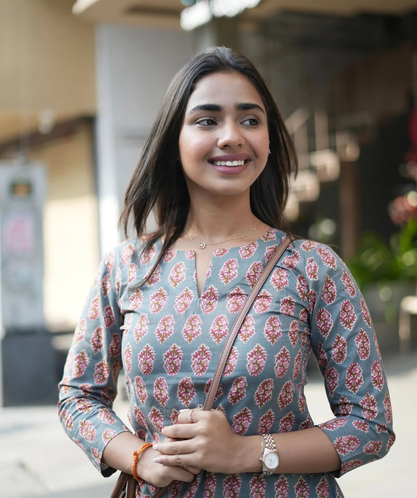 Refresh your everyday wardrobe with this Misty Ash Bloom Cotton Short Top, designed for effortless casual styling. Crafted from breathable cotton fabric, this 29-inch top offers a comfortable and lightweight feel, making it ideal for daily wear.