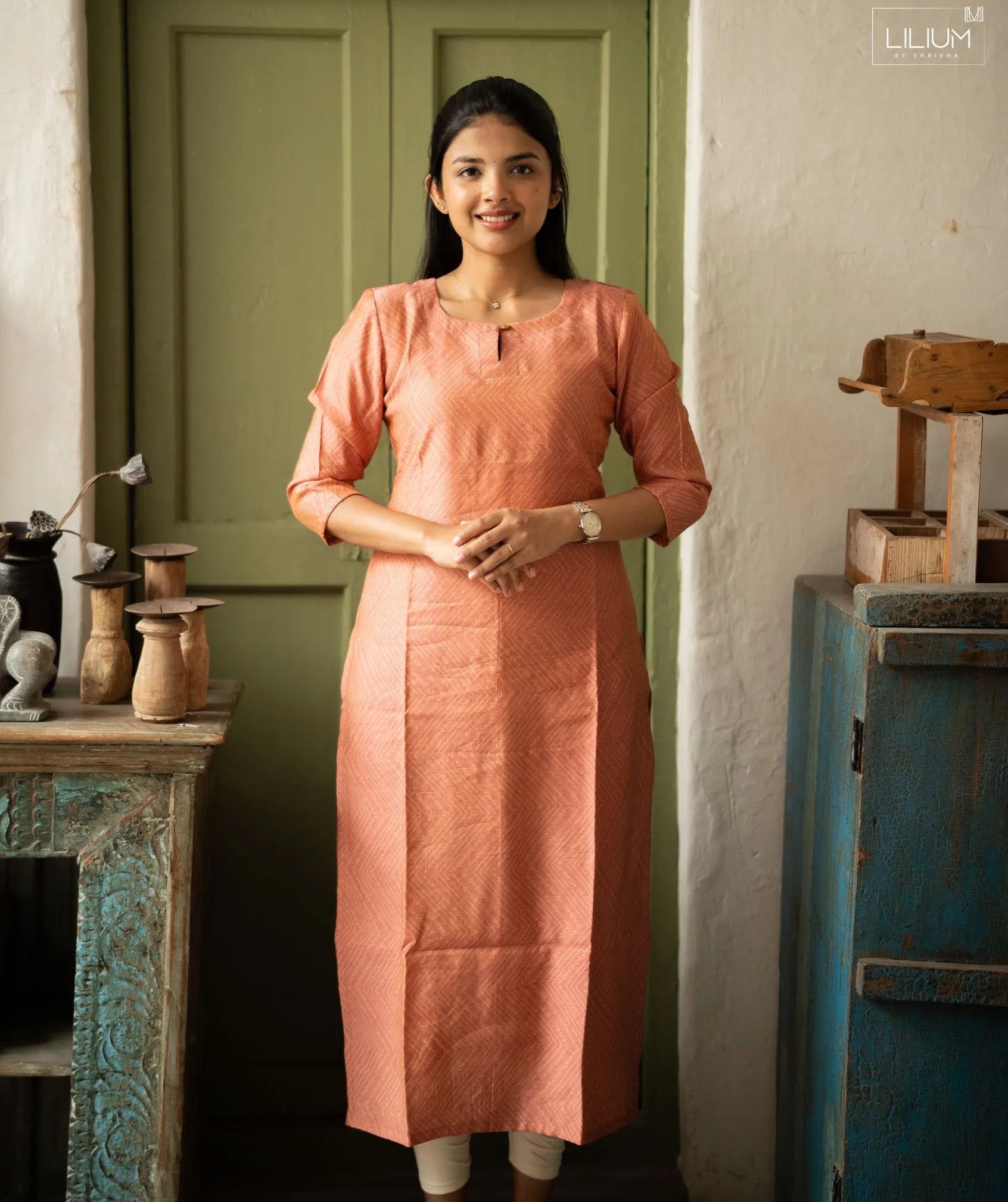 Peach Sandstone Chanderi Kurti – Casual 3/4 Sleeves