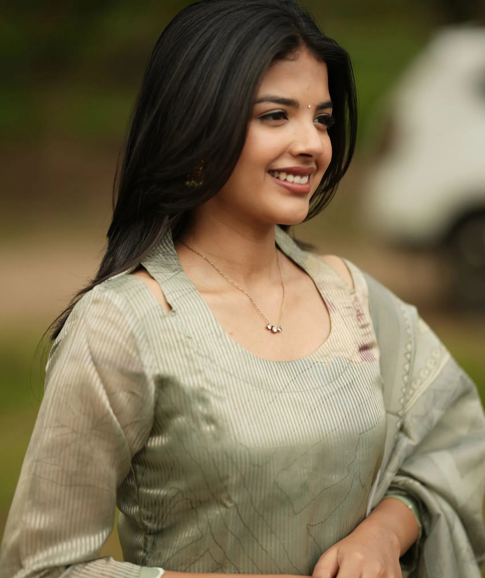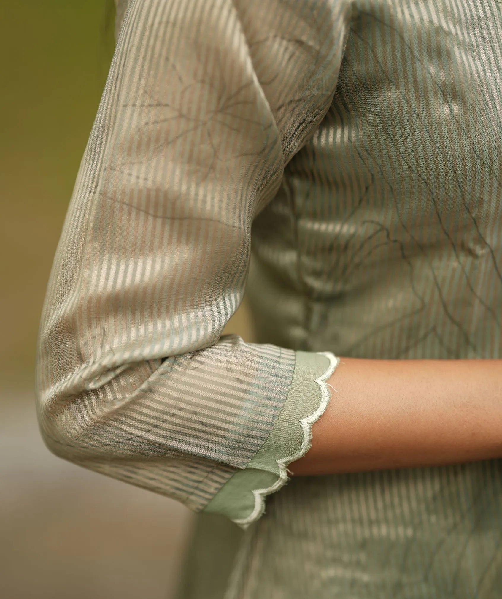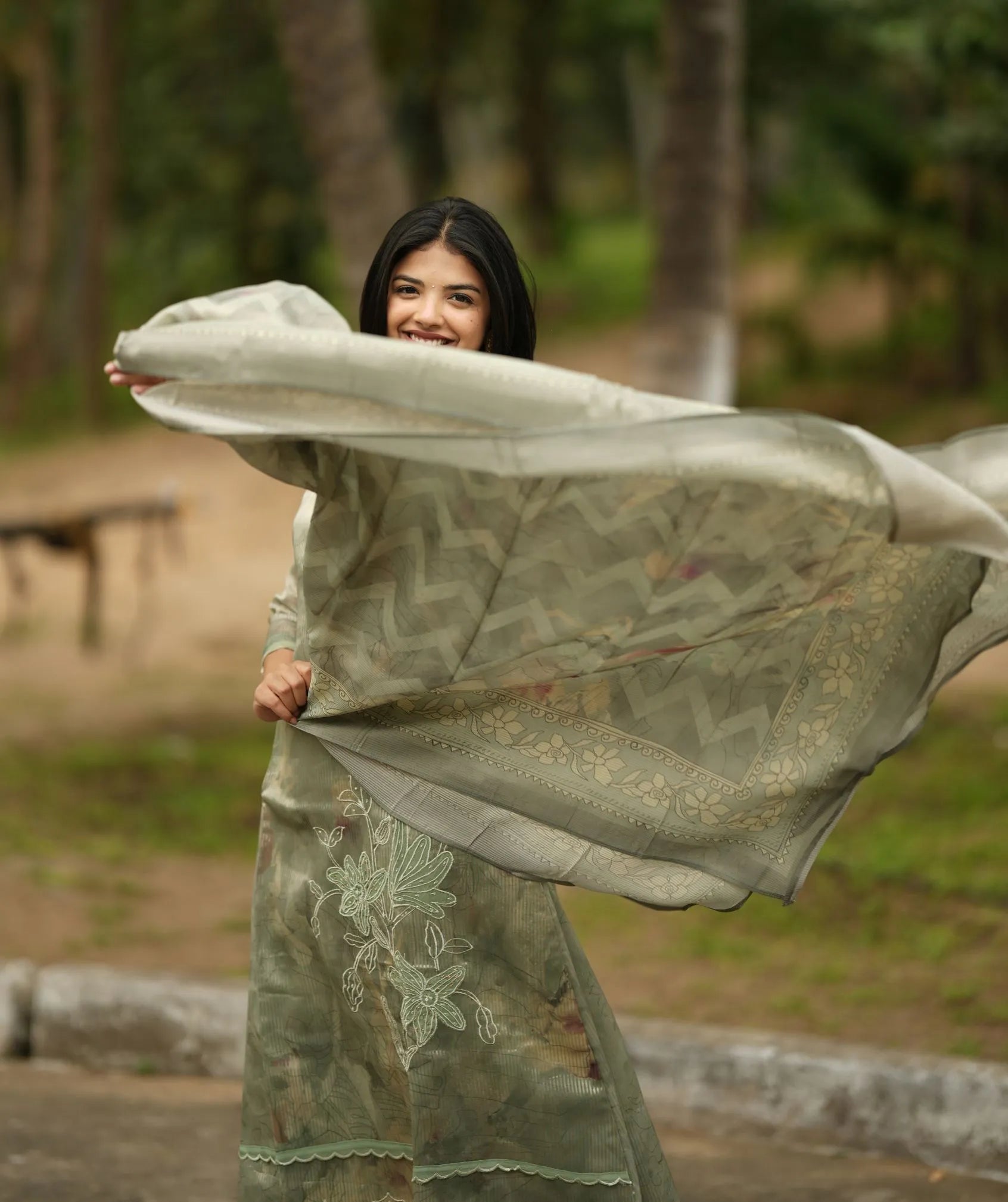 Sage Green Tissue Silk 3-Piece Set – Festive Elegance