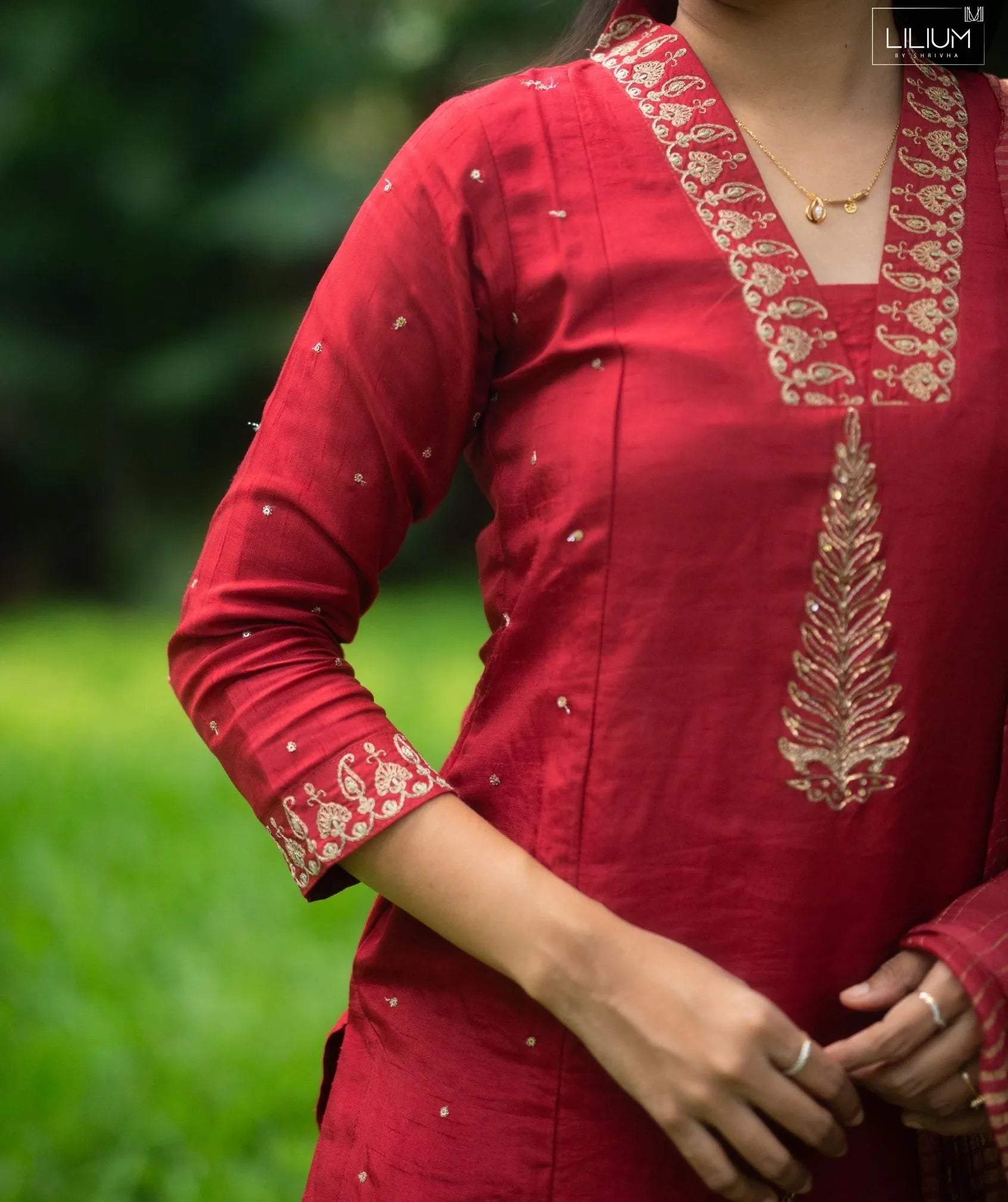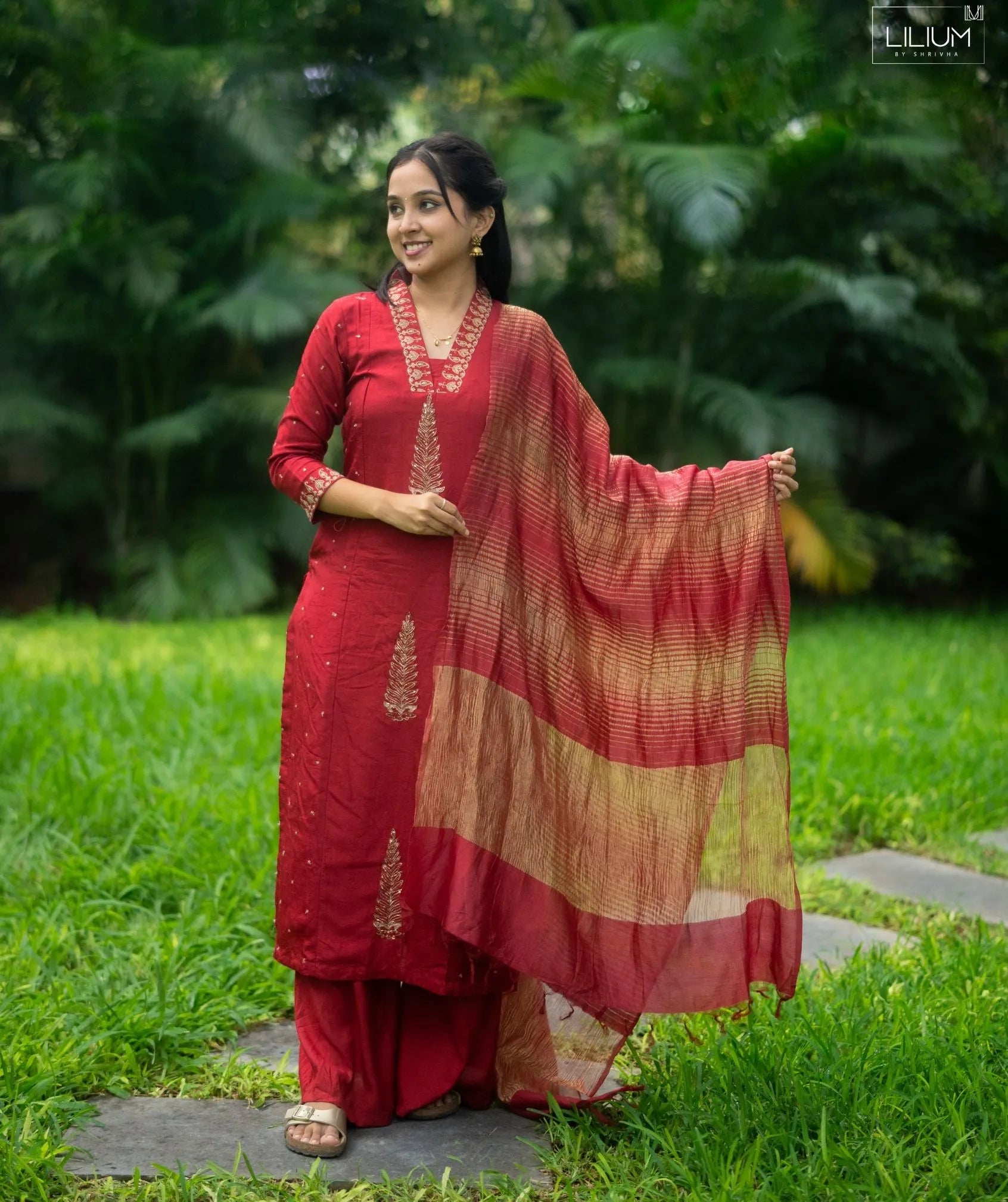 Vermilion Grace Muslin Silk 3-Piece Festive Set