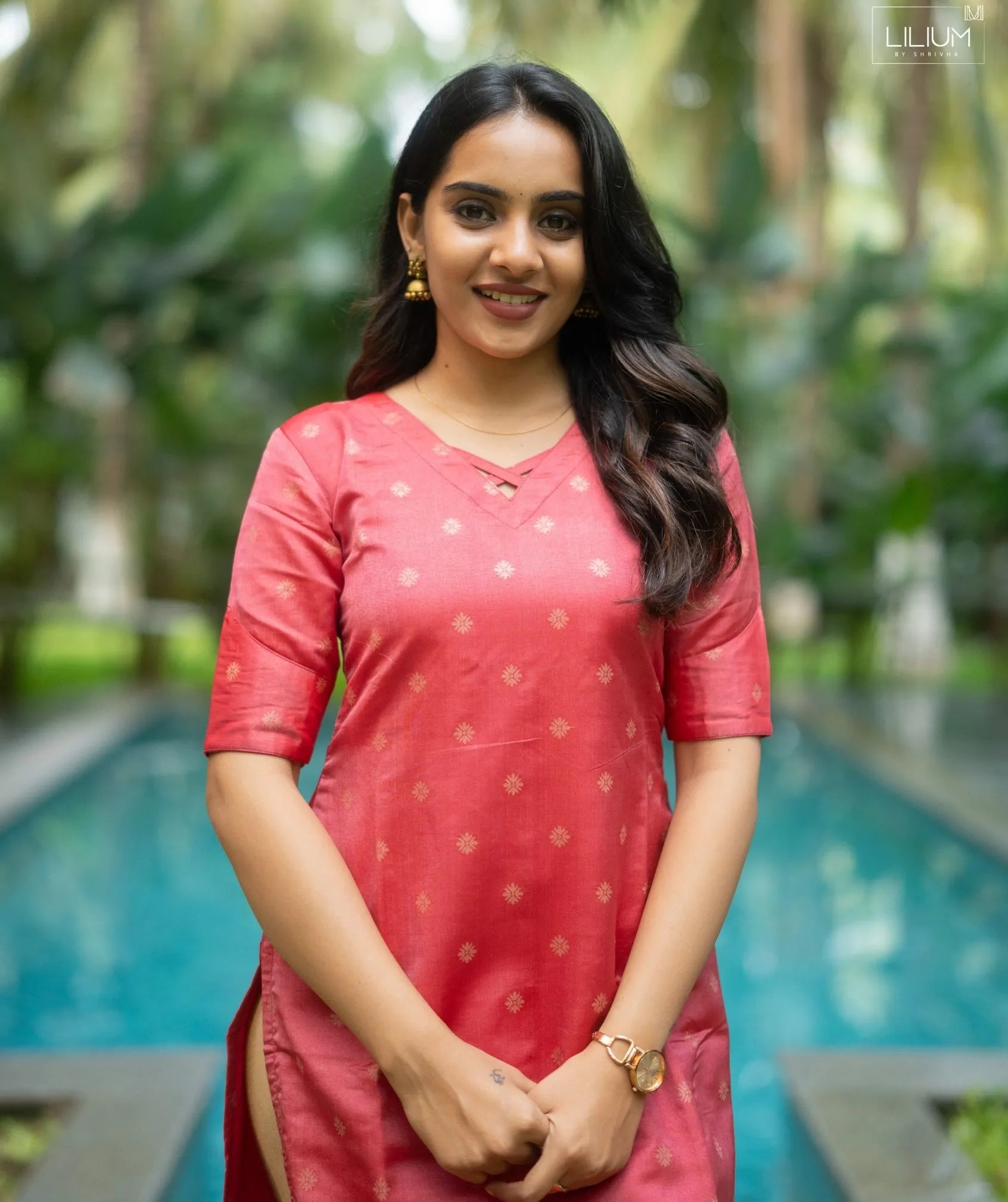 Celebrate festive moments in timeless elegance with this Rosé Gulabi Banaras Silk Kurti. Crafted from rich Banaras silk, this kurti showcases a graceful finish that enhances its festive appeal. The 44-inch length offers a flattering silhouette, while the elbow-length sleeves provide balanced coverage and comfort. Designed with a full lining, it ensures a smooth and structured fit throughout the day. Ideal for festive wear, this kurti blends traditional fabric with a refined design, making it suitable for celebrations, gatherings, and special occasions. A versatile addition to your ethnic wardrobe, it pairs effortlessly with classic bottoms and accessories for a complete festive look.