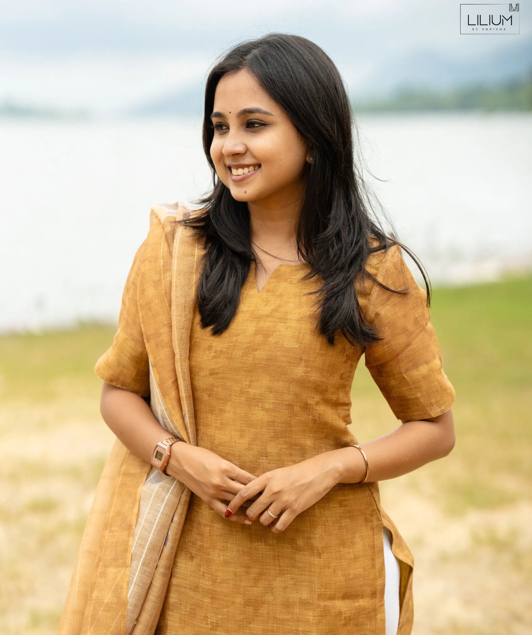 Designed with a soft lining, the kurti ensures a smooth and comfortable fit throughout the day. The matching shawl enhances versatility, allowing effortless styling for work, daytime outings, or relaxed gatherings. Finished in the warm and earthy Amber Sandstone shade, this piece blends modern minimalism with traditional appeal—making it a timeless addition to your collection.